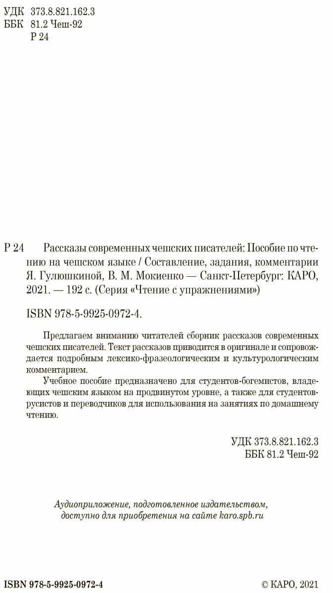 Сервис сравнения цен СкидкаГИД предлагает сравнить цены на товар «Книга: Рассказы современных чешских писателей (Гулюшкина Яна; Мокиенко Валерий Михайлович); Каро, 2021»