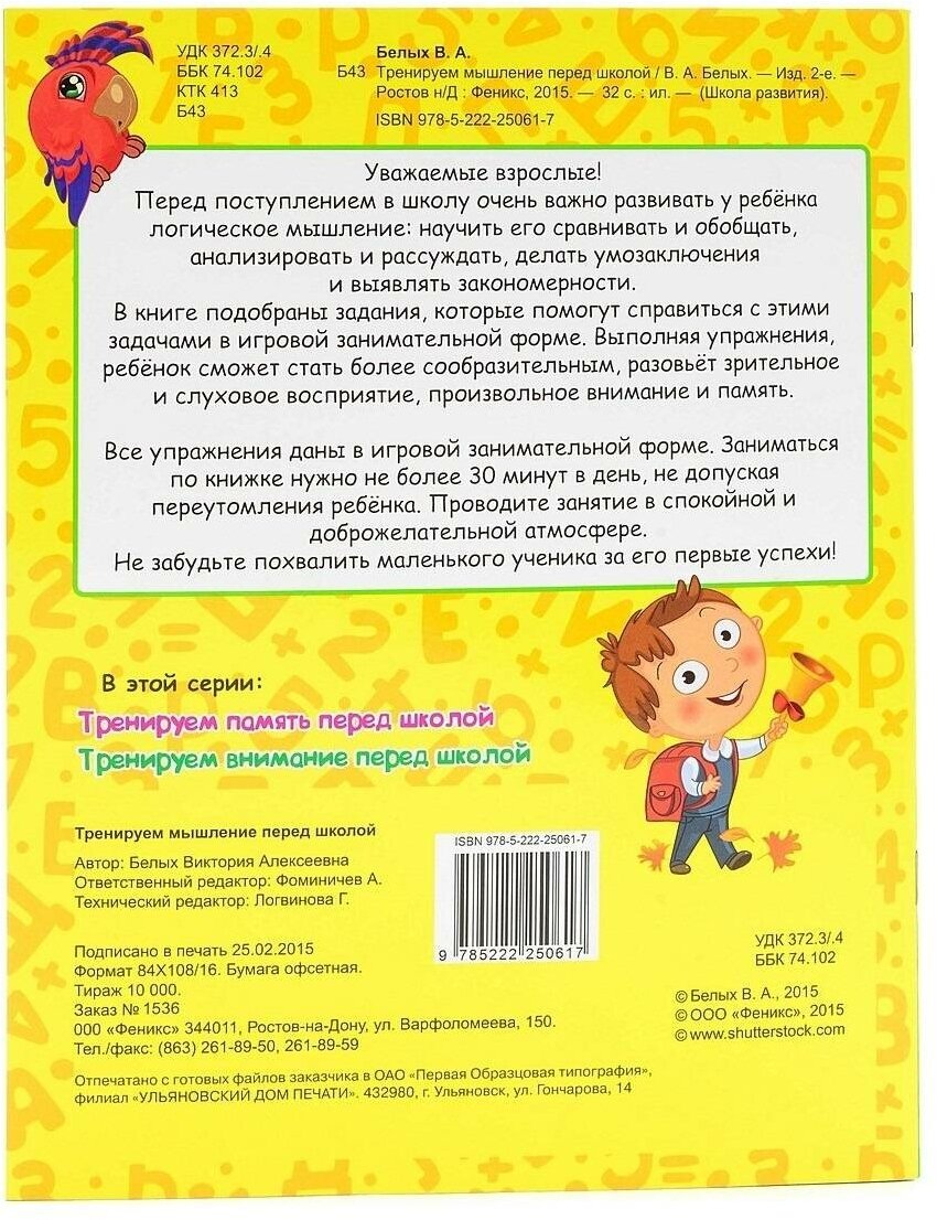 Сервис сравнения цен СкидкаГИД предлагает сравнить цены на товар «Книга: Тренируем мышление перед школой (Виктория Алексеевна Белых); Феникс, 2015»
