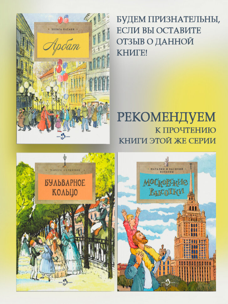 Нам очень нравятся книги этой серии. Новинка от Х. Патаки не стала исключением, хотя брать ее мы боялись, так как прошлая книга про улицы Москвы не приглянулась. Но эта книжка совсем иного рода! Все написано легким, доступным детям языком, автор не увлекается экскурсом в историю. Все в пределах нормы. Есть пояснения устаревших понятий, маленькие сноски на полях. Иллюстрации тоже простые и понятные. Такая книга отлично подойдет как жителям столицы, так и детишкам из других городов.