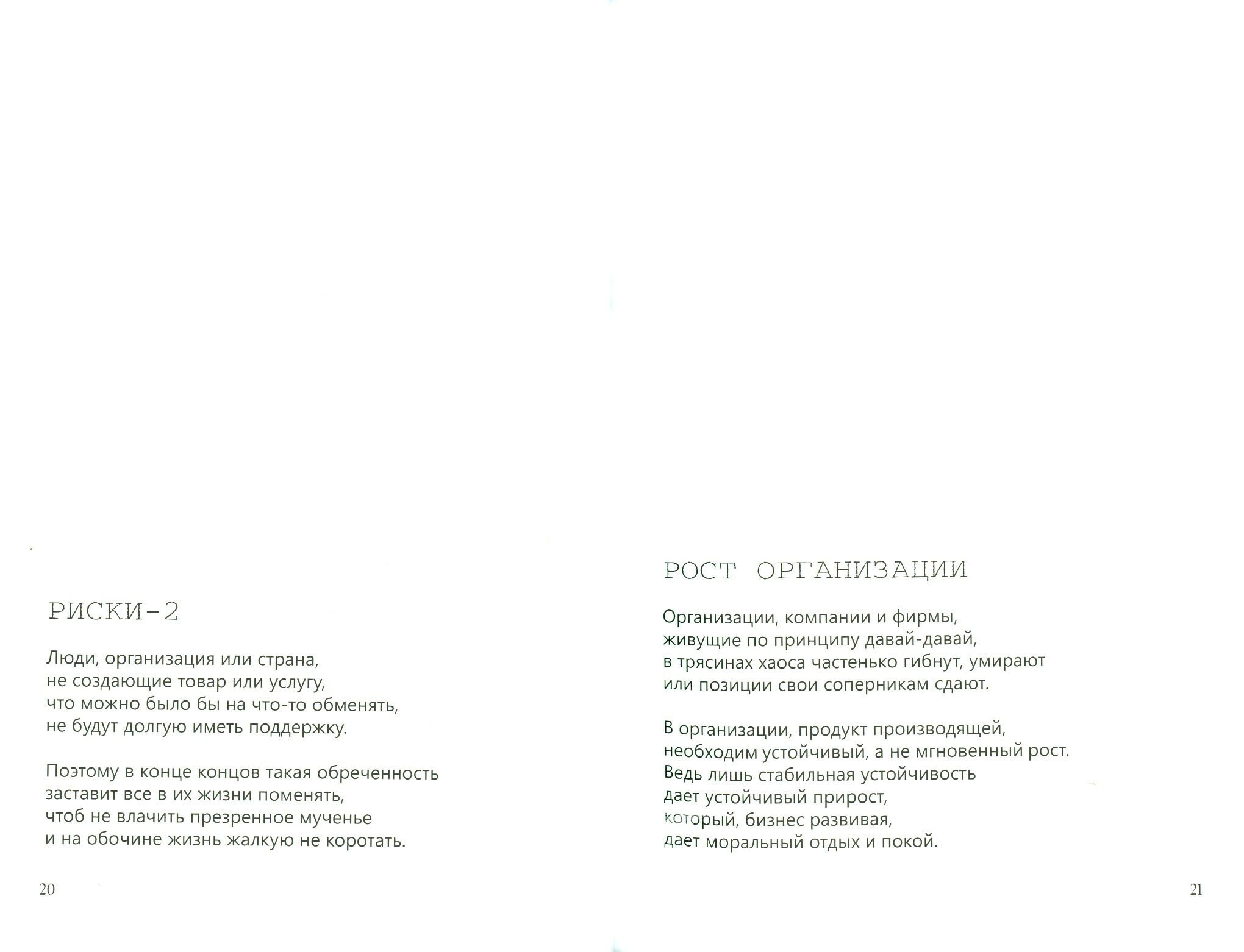 Перед нами своеобразно оформленные мысли человека, имеющего опыт успешного ведения бизнеса. Это очень полезные советы, наблюдения и сентенции о законах предпринимательства, оформленные в виде кратких изречений-афоризмов, которые пригодятся как начинающему предпринимателю, так и тем, кто просто интересуется психологией человеческих взаимоотношений..