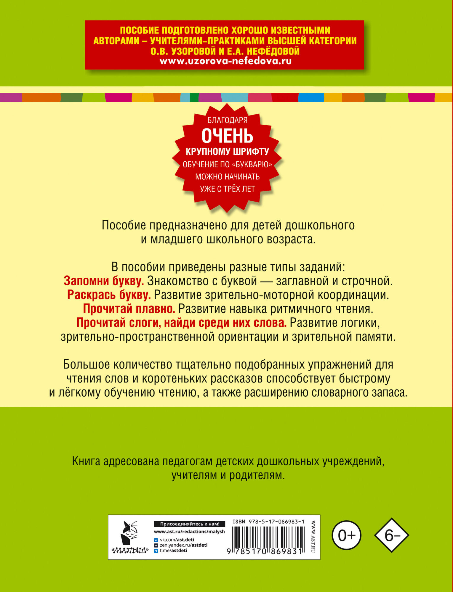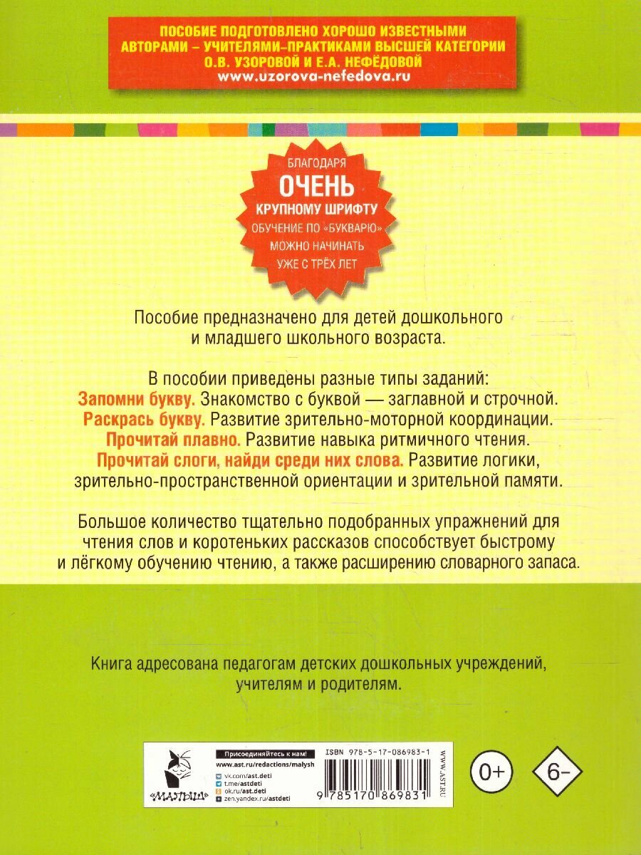 Букварь с очень крупными буквами для быстрого обучения чтению (Елена Алексеевна Нефедова, Ольга Васильевна Узорова); АСТ, 2024
