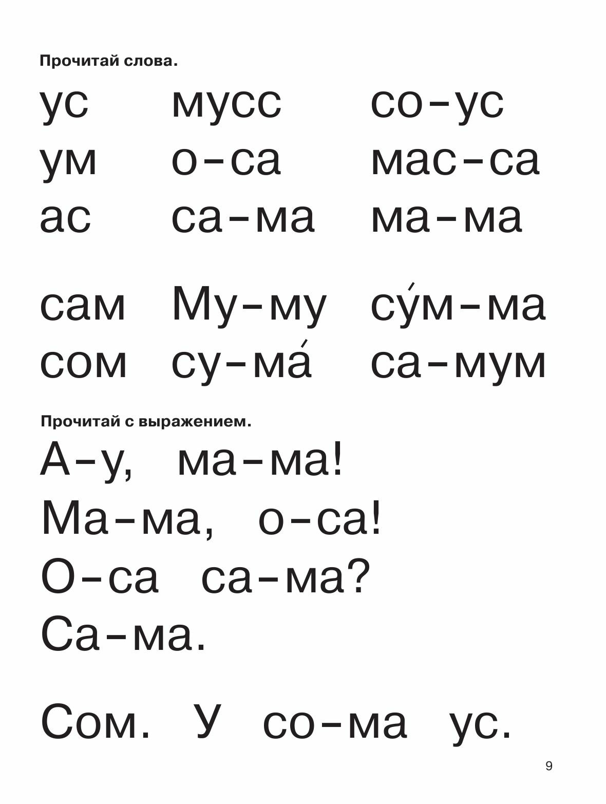 Большое количество тщательно подобранных упражнений для чтения слов и коротеньких рассказов способствует быстрому и лёгкому обучению чтению, а также расширению словарного запаса.