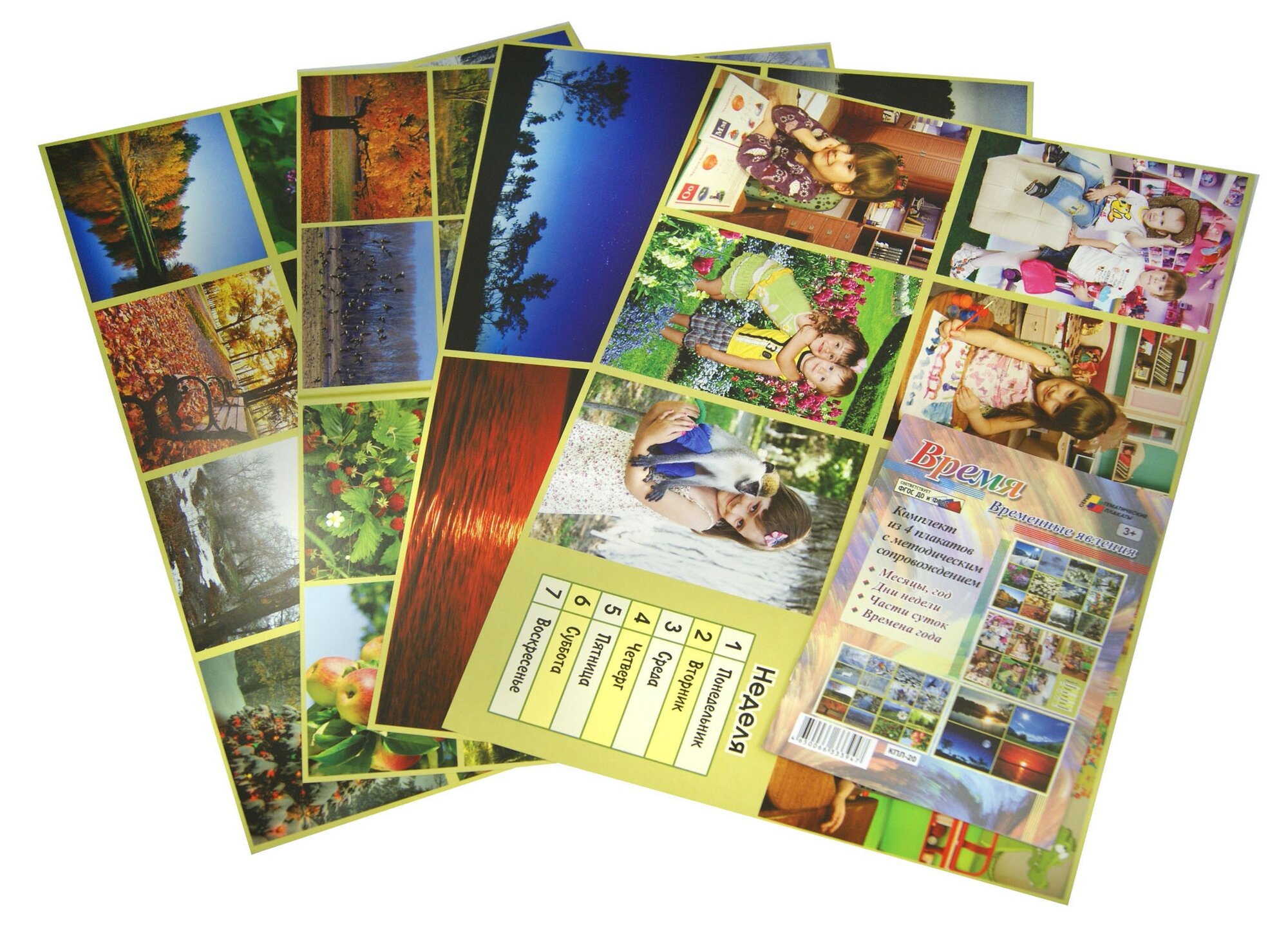 Качество печати и картона хорошее. Фотографии на листе с днями недели вызывает недоумение: зачем я купила фотографии какой-то чужой девочки и как они связаны с днями недели? На других листах картинки тоже не сами собой по смыслу раскладываются, нужно подумать, но с днями недели так и не получилось :) В общем, полиграфия хорошая, дидактическая ценность под вопросом.