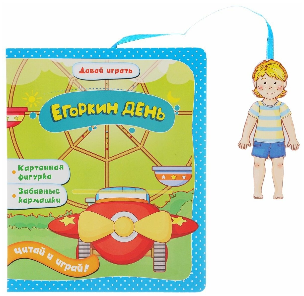 Книга очень яркая, картинки яркие и крупные. Егорка прикреплен к книге ленточкой, так что детям которые еще тащут все в рот рекомендуется изучать ее под присмотром, дабы Егорка не был съеден. Кармашки туговатые и Егорка туда влазит с трудом, думаю малышу трудновато будет самому его садить в кармашек. А вообще книга интересная.
