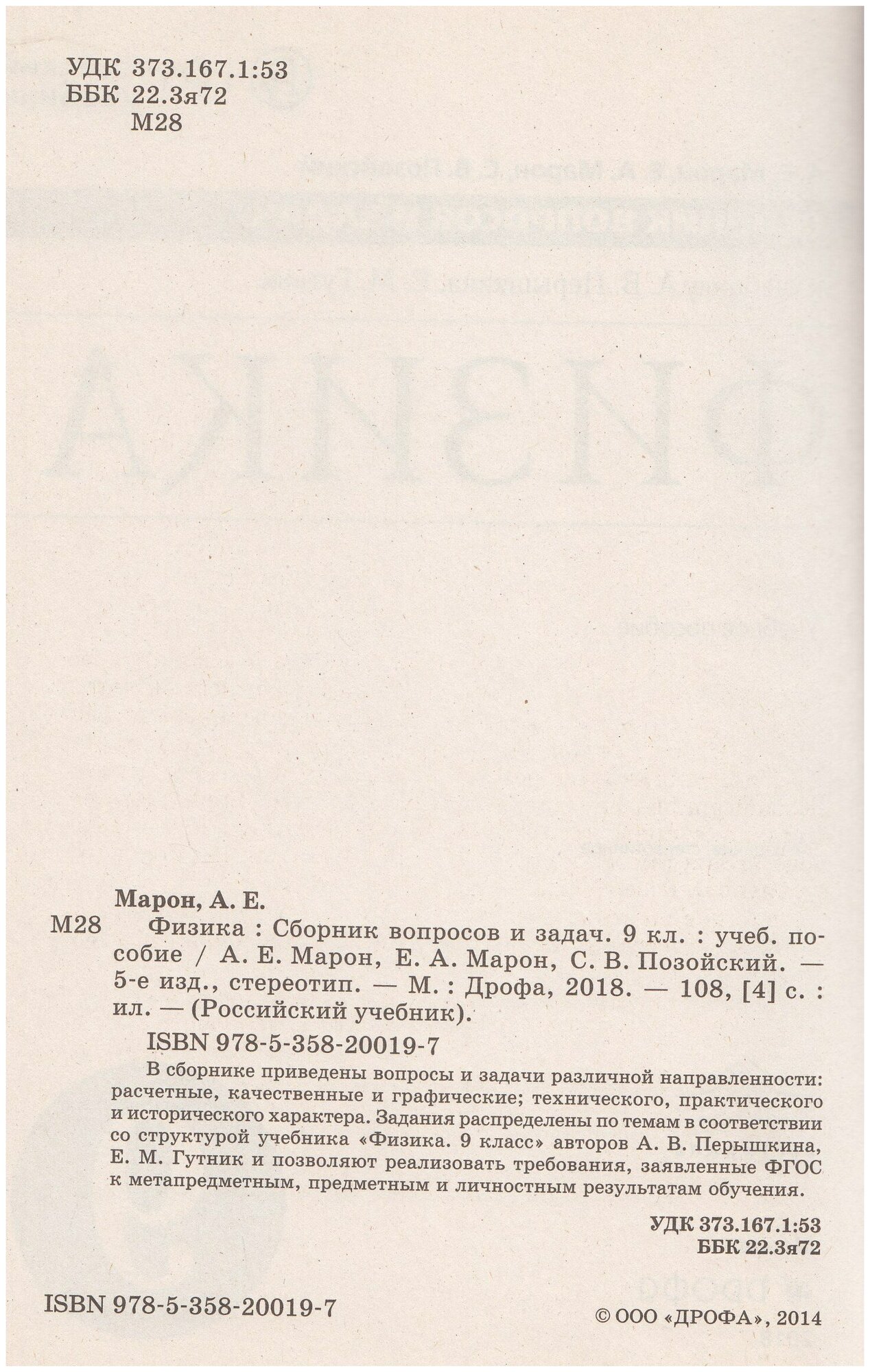 Физика. 9 класс. Сборник вопросов и задач. Учебное пособие. Вертикаль. (Марон Абрам Евсеевич, Марон Евгений Абрамович, Позойский Семен Вениаминович); Просвещение/Дрофа, 2022