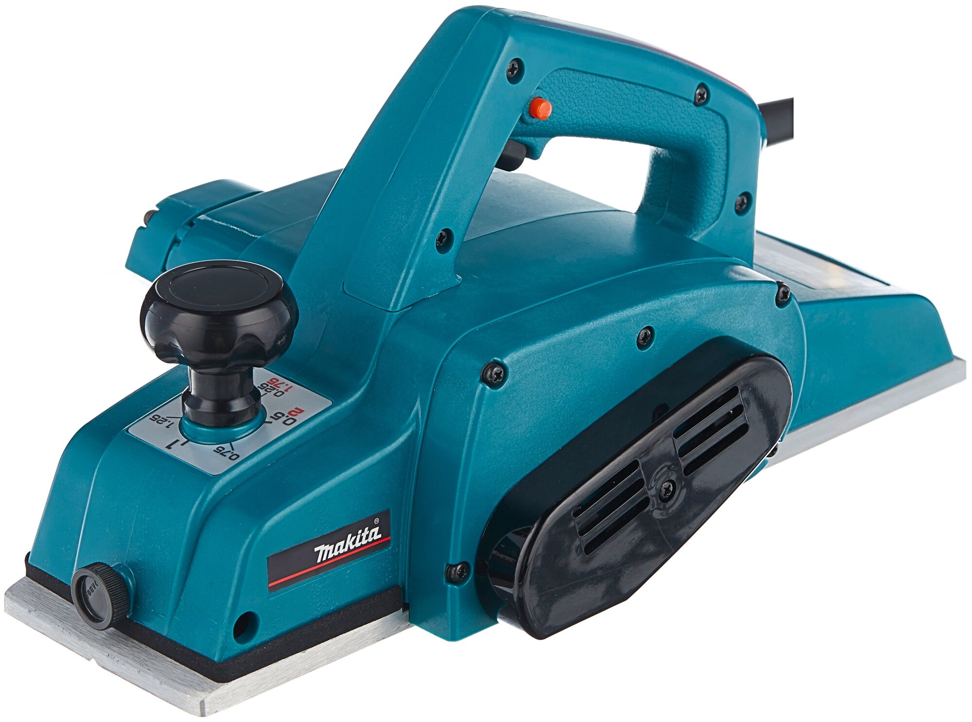 Рубанок электрический Makita предназначен для обработки деревянных и пластиковых поверхностей. Мощный двигатель позволяет обрабатывать заготовки шириной 110 мм. Опорной ручкой можно регулировать толщину снимаемой стружки. Большая скорость вращения ножа обеспечивает строгание без сколов. Опорная подошва выполнена из литого алюминия, что увеличивает её прочность. V-образный паз делает снятие фаски более легким. Патрубок для пылеотвода позволяет подключить пылесос для удаления пыли и опилок.