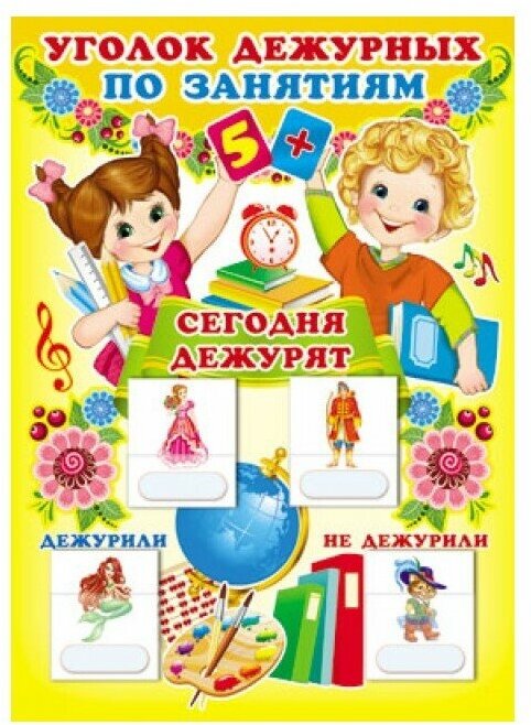 Наглядное пособие "Уголок дежурных по занятиям" с набором карточек: "Дежурили - Не дежурили".