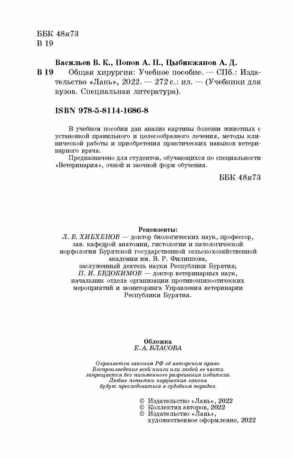 Общая хирургия. Учебное пособие (Васильев Виктор Кириллович, Попов Александр Петрович, Цыбикжапов Алдар Дашиевич); Лань, 2014