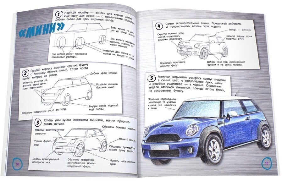 Очень ребенок хотел нарисовать гоночную машину, и вот я купила эту книгу. Для такого объема и формата - очень содержательная книга.