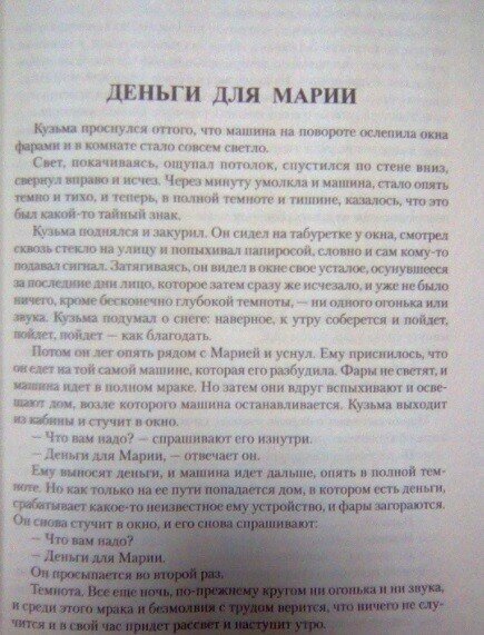 В этом издании собраны одни из самых лучших произведений Валентина Распутина - "Деньги для Марии", "Живи и помни", "Прощание с Матёрой", "Дочь Ивана, мать Ивана". Очень интересны и читаются на одном дыхании. Очень эффектно выполнена обложка, книга сама по себе объемная, но очень легкая. Но сэкономили на качестве бумаги, и очень мелкий шрифт, в принципе читаемый, но для лично для меня комфортнее был бы покрупней. Иллюстраций нет, но это не так существенно.