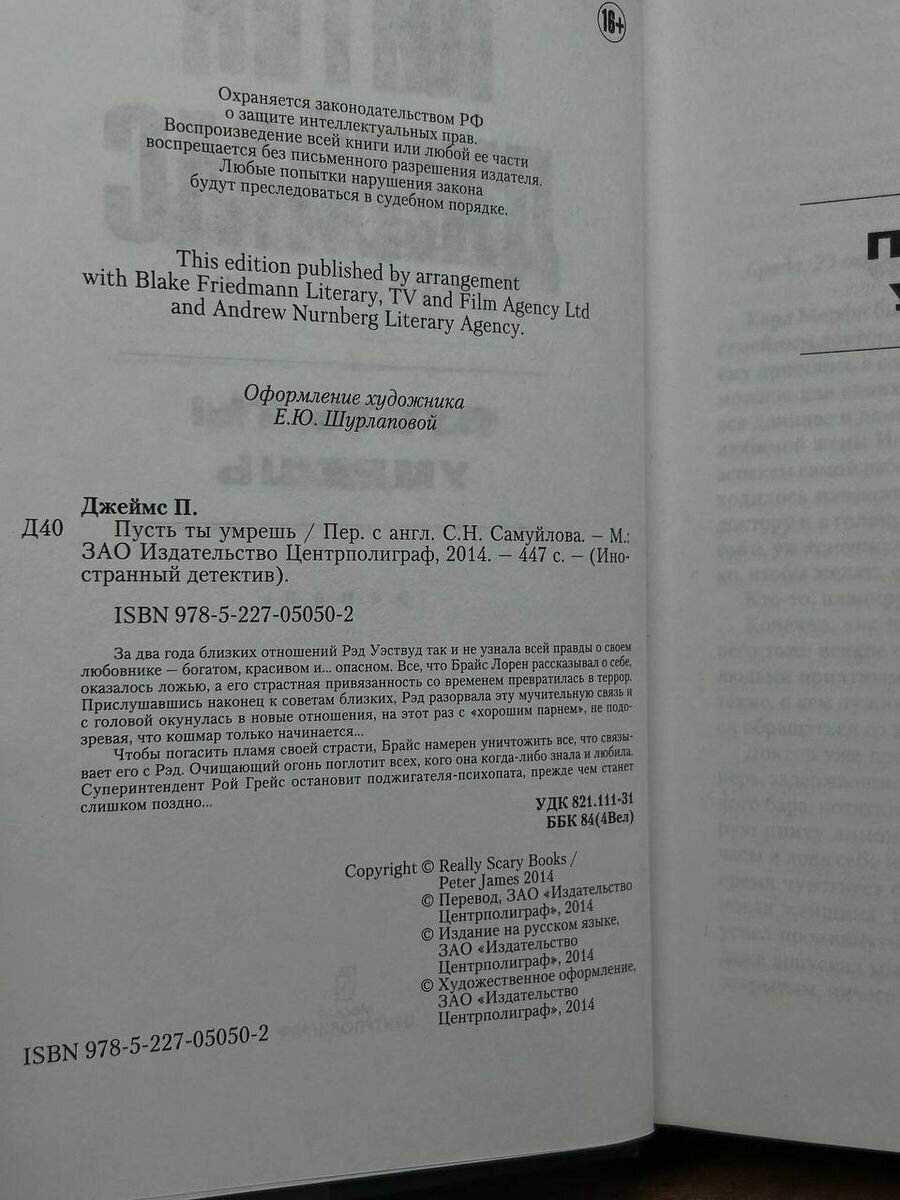 Очередной шедевр от Питера Джеймса!!! Потрясающая книга! Достаточно сказать что я вчера днем получил и вечером того же дня стал ее читать. И пока не закрыл последнюю страницу, не встал. Всем почитателям писателя обязательно к прочтению! Книга прекрасно издана. Читайте и наслаждайтесь.