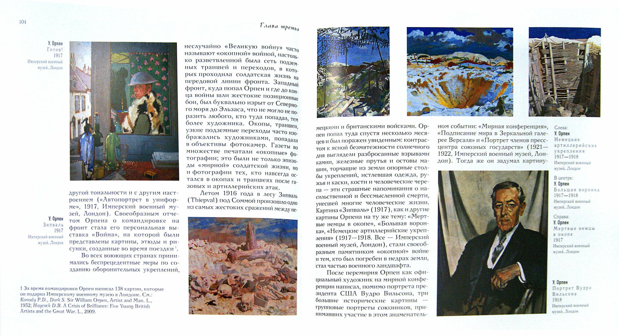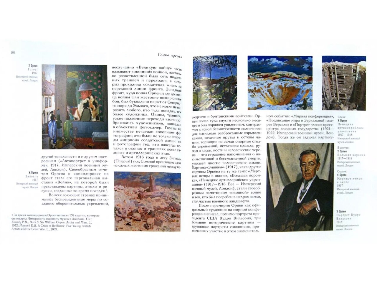 В книге впервые в отечественной историографии рассмотрено искусство эпохи Первой мировой войны в широком культурно-историческом контексте. Подробно проанализировав основные стили и направления в предвоенном искусстве, включающем эксперименты авангарда, прежде всего таких его практик, как фовизм, кубизм, футуризм и экспрессионизм, автор первый раз в столь полном объеме представляет историю европейского искусства военного времени. Здесь рассмотрено творчество художников-фронтовиков и официальных военных художников воюющих стран: Англии, Франции, Италии, Германии и Австрии - англичан К.Р. Невинсона, П.У. Льюиса, П. Нэша, С. Спенсера, французов Ф. Леже, П. Пикассо, М. Дени, Ф. Валлотона, А. Маре, немцев М. Бекмана, О. Дикса, Л. Кирхнера, австрийцев Э. Шиле и А. Эггер-Линца и многих других. В книгу включен большой материал по центрам интеллектуальной эмиграции в США и Швейцарии, в ней затронуты проблемы возникновения такого контркультурного движения, как дадаизм. В этом контексте рассмотрено творчество М. Дюшана, Ф. Пикабиа, Мэн Рея, Т. Тцара, М. Эрнста, Г. Арпа и др. Особое внимание уделено берлинской группе дадаистов. В заключение автор на основе анализа творчества ведущих мастеров дает характеристику стилей и направлений послевоенного искусства. Книга содержит большое количество иллюстраций и краткие биографии художников-участников войны.
