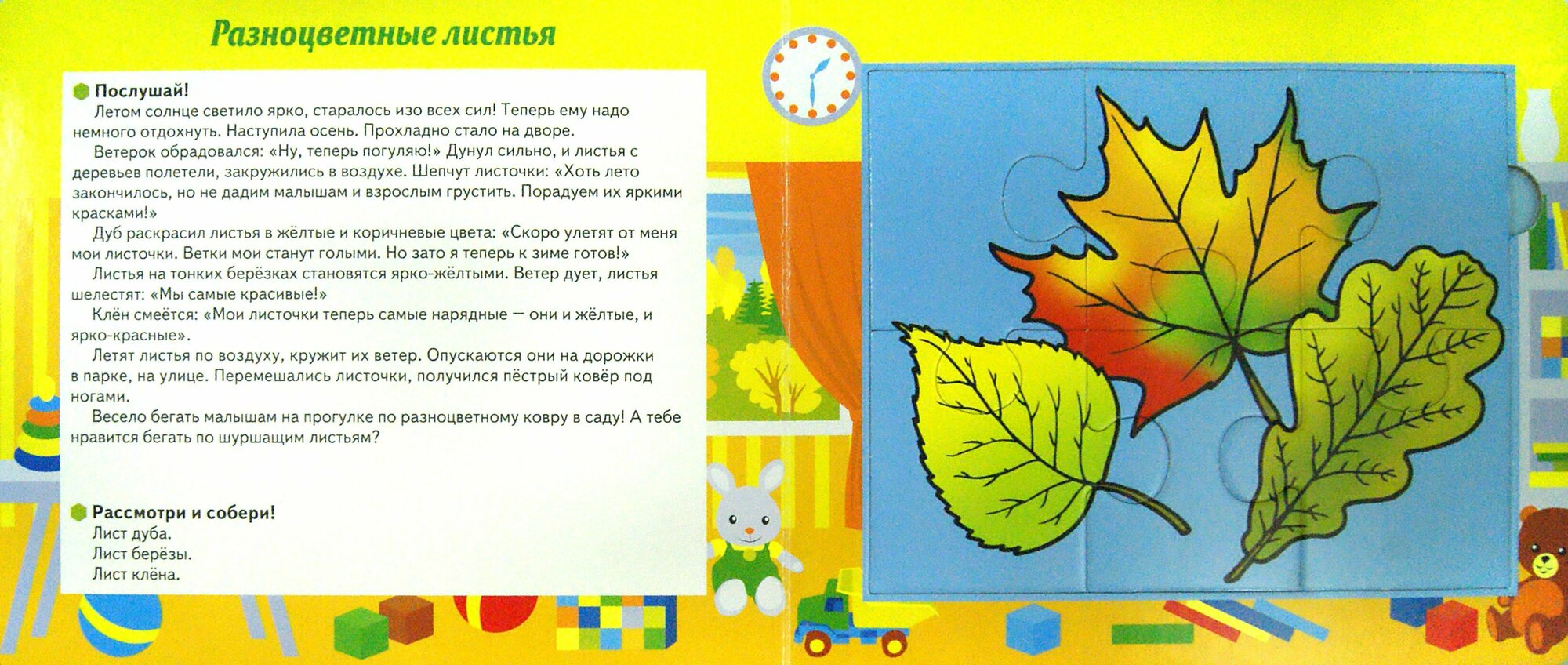 Вчера получили ззаказ с этой книгой, сначала не поняла, что это, так как ожидала комплект из книг(не поняла, в описании, что книга всего одна). В книге 4 разворота с текстом и картинкой пазлом на 6 деталей. Качество печати и картона хорошее, под картинкой напечатана та же картинка, что и на пазле.Текст к первой картинке ужасный, на последующих нормальный. В целом книга нормальная, но цена качеству не соответствует, слишком дорого 400 р. за эту книгу. Мой ребенок очень любит собирать пазлы(2года1мес) и у нас очень много подобных книг по цене около 200 р., и в них и картинок больше и само качество пазлов лучше. Выложить фото не получается, то мб много, то формат фото не тот. Из этой серии больше не буду ничего брать.
