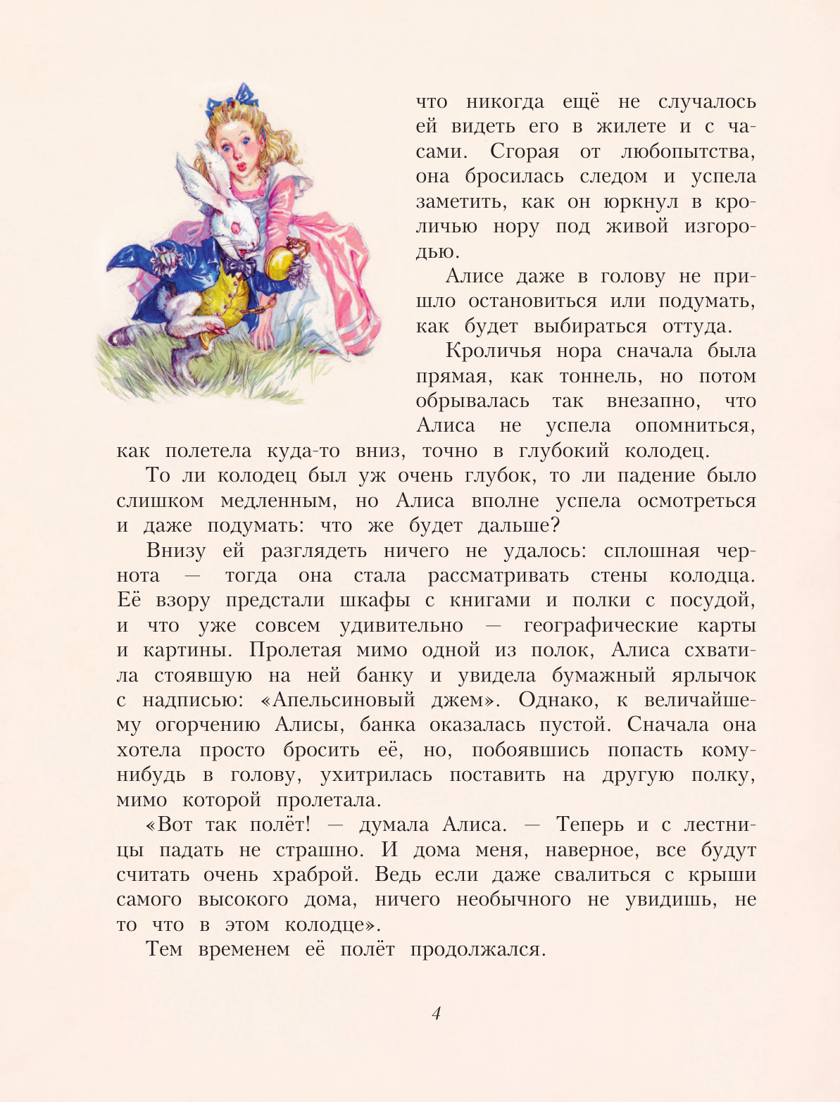 Книга замечательная! Приятная на ощупь обложка, удобный формат (чуть меньше А4). Стрницы из качественного офсета средней плотности, одного цвета с обложкой (на мой взгляд, пастельного розового). Оформление очень удачное, цвет страниц гармонирует с великолепными рисунками. Шрифт средний, глаза не устают. Рисунки на каждом развороте. Перевод меня устроил.