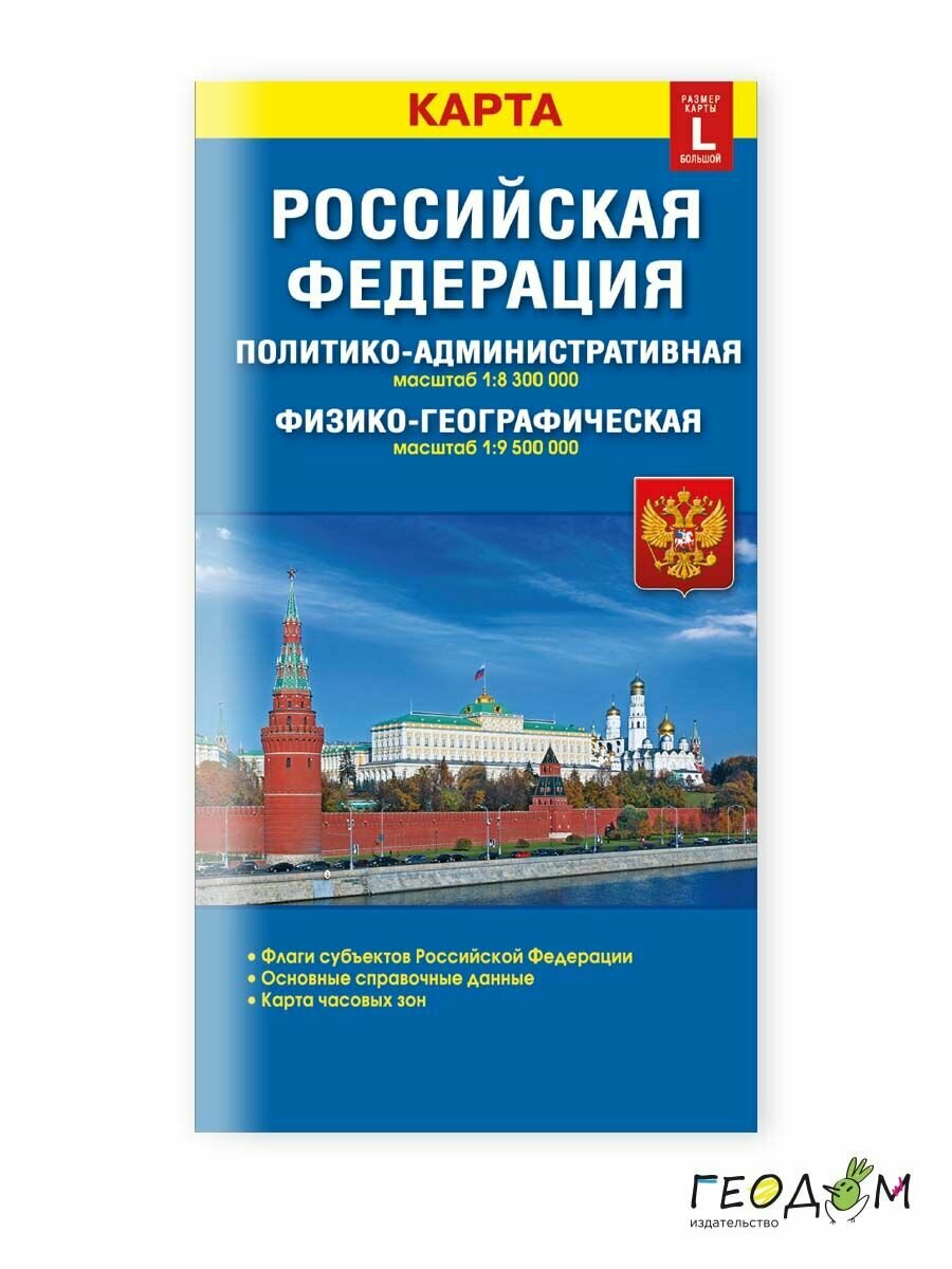 Политико-административная (масштаб 1 : 8300000) и физико-географическая (масштаб 1 : 9500000) карты Российской Федерации.