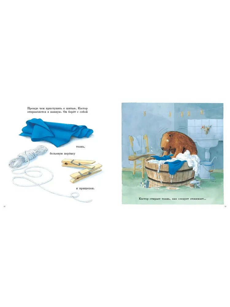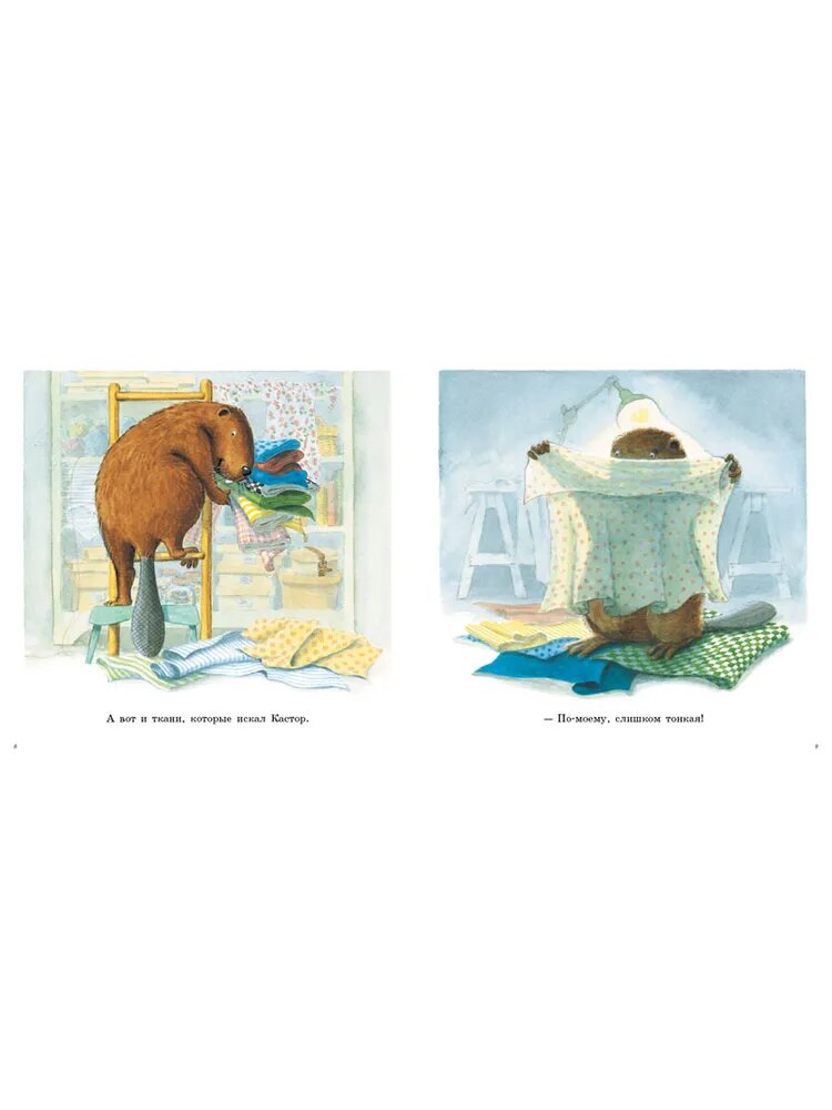 Книжка для совсем малышей. Сынишке 2 года безумно любим всю серию и даже шьем вместе с кастором. Очень приятные и милые иллюстрации, теста минимум. Сюжет не замысловатый. Просто описание действия бобрёнка по картинке. Текст больше похож на инструкцию. Книжка поможет малышам расширить словарный запас.