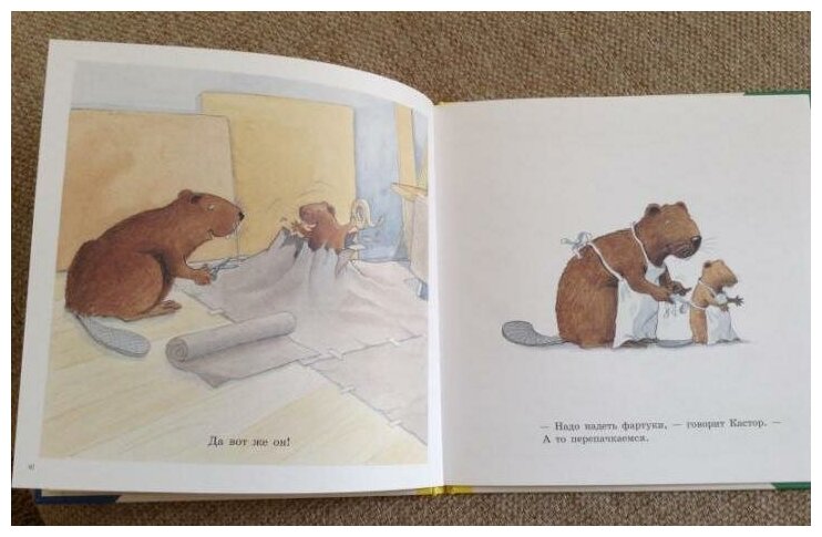 Наше знакомство с трудолюбивым бобром началось с книги Кастор печет пирог, остальных уже не было, к сожалению, в продаже, поэтому отдельное спасибо изданию Мелик-Пашаев за переиздание этих книг.