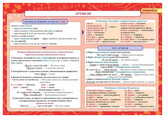 .Они помогут освоить сложный учебный материал. Опираясь на наглядные таблицы, каждый ученик выполнит домашнее задание и повысит уровень владения иностранным языком.