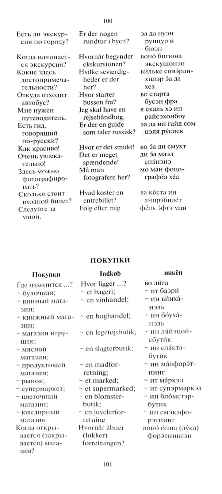 Если Вы решили посетить Данию с туристической или деловой целью и не знаете датского языка, этот разговорник поможет вам сориентироваться в разного рода ситуациях. Каждый из разделов содержит слова и фразы на разные темы, с помощью которых будет не сложно найти общий язык с собеседниками. Для удобства слова и фразы снабжены практической транскрипцией.