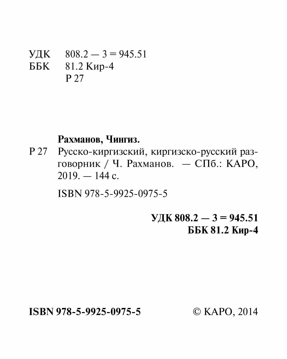 Русско-киргизский киргизско-русский разговорник (Рахманов Ч.); КАРО, 2014