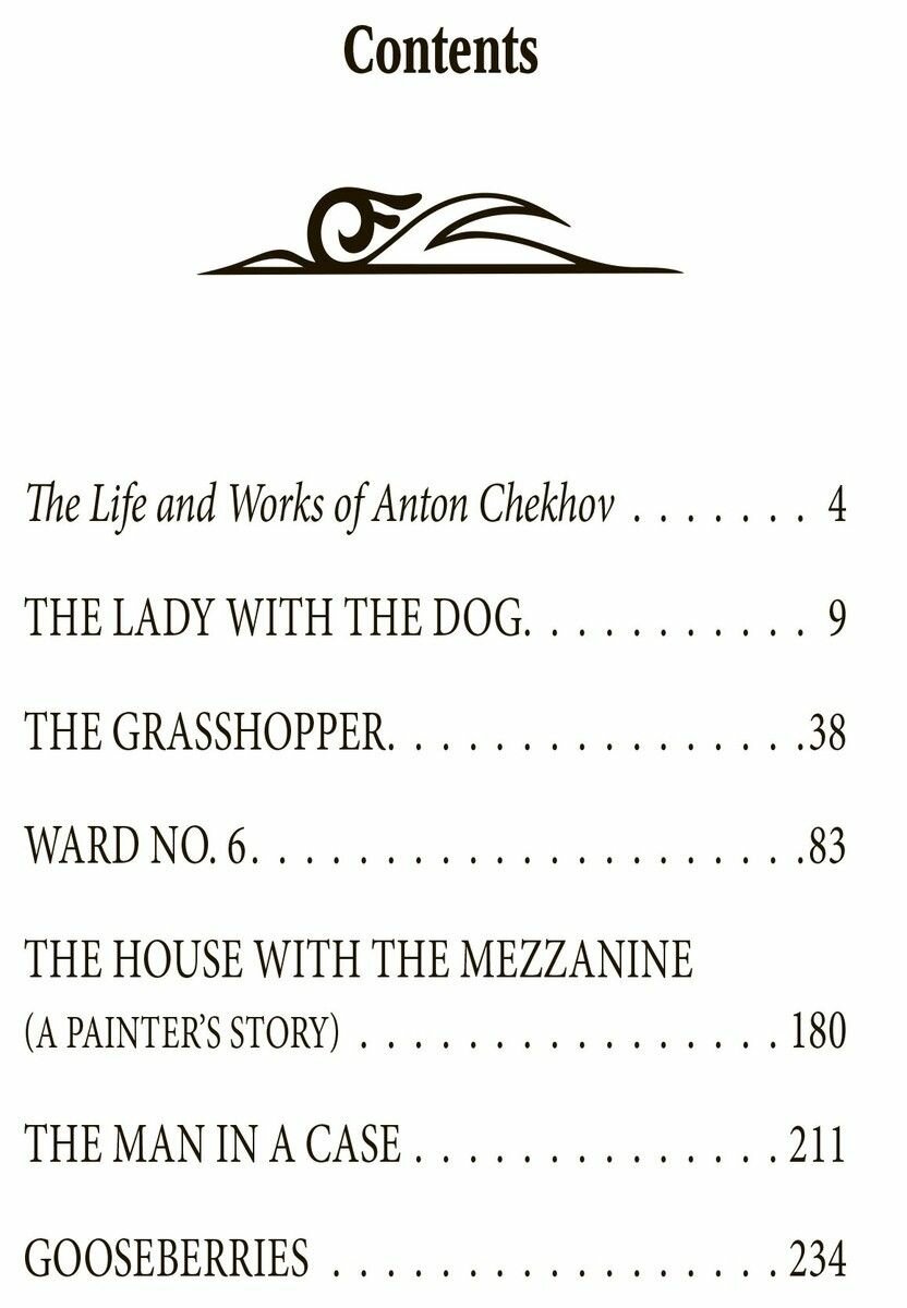 Вашему вниманию предлагаются переводы наиболее известных рассказов, относящихся к позднему периоду творчества А. П. Чехова.