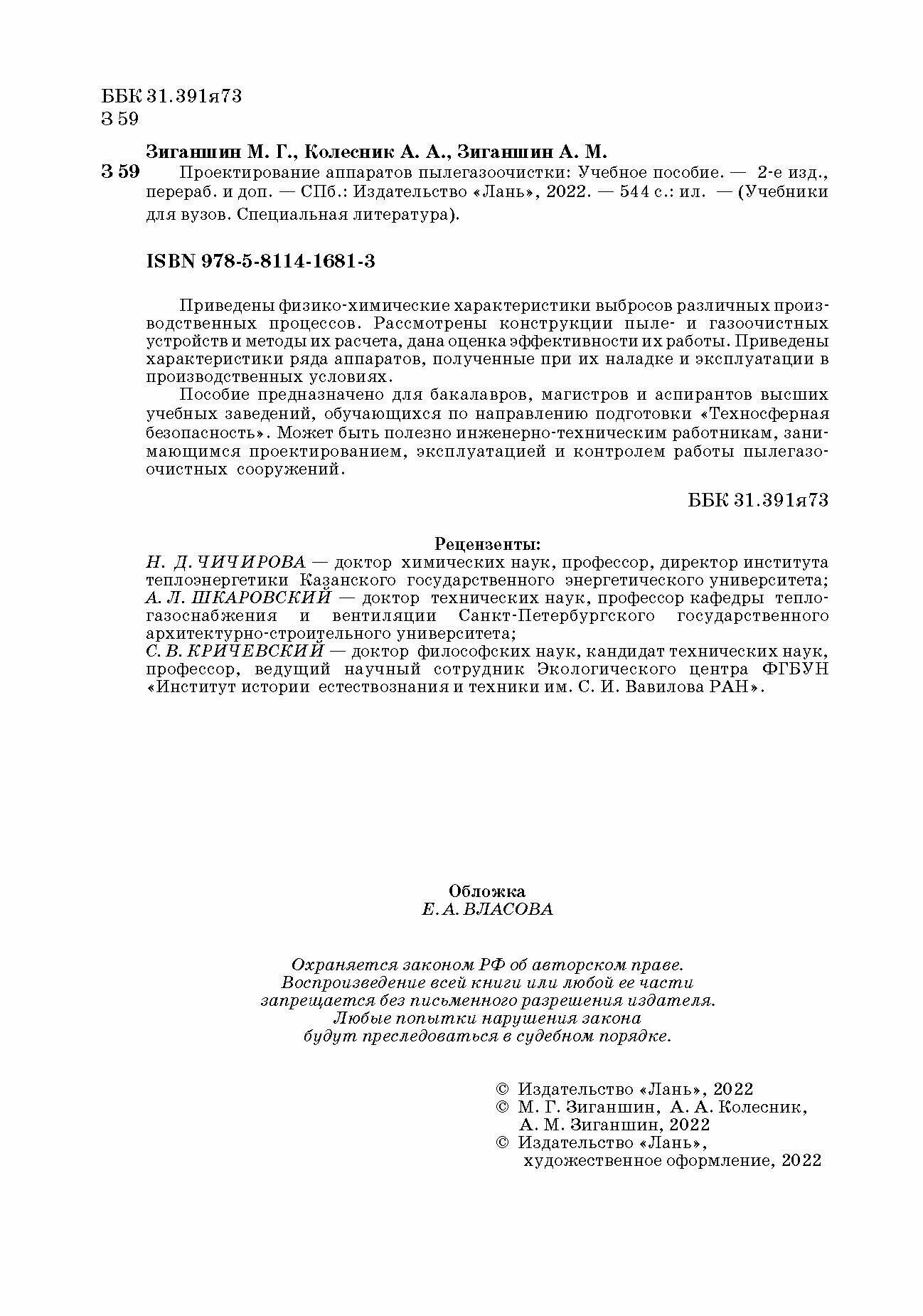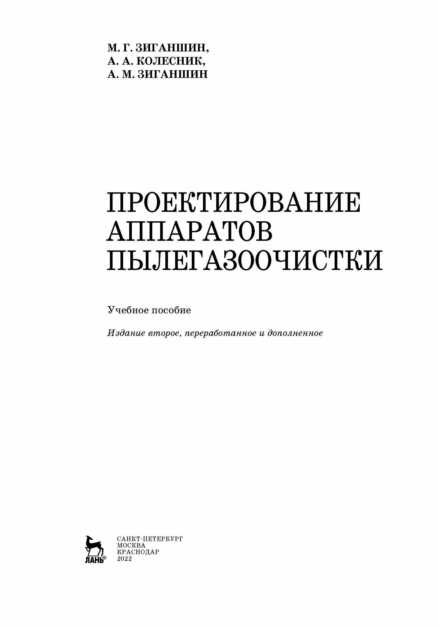 Проектирование аппаратов пылегазоочистки. Учебное пособие (Зиганшин Малик Гарифович, Колесник Алексей Алексеевич, Зиганшин Арслан Маликович); Лань, 2014