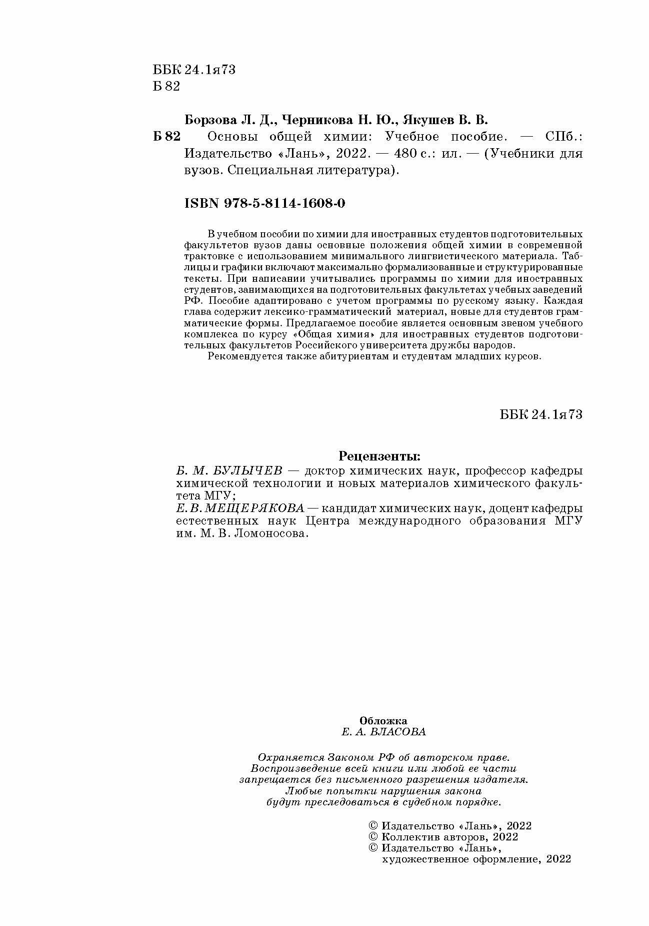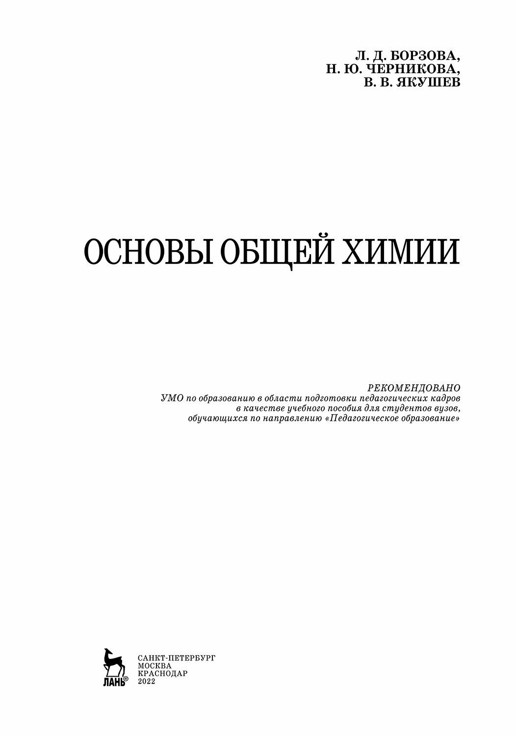 Основы общей химии. Учебное пособие (Борзова Лидия Даниловна, Черникова Наталья Юрьевна, Якушев Владимир Владимирович); Лань, 2014