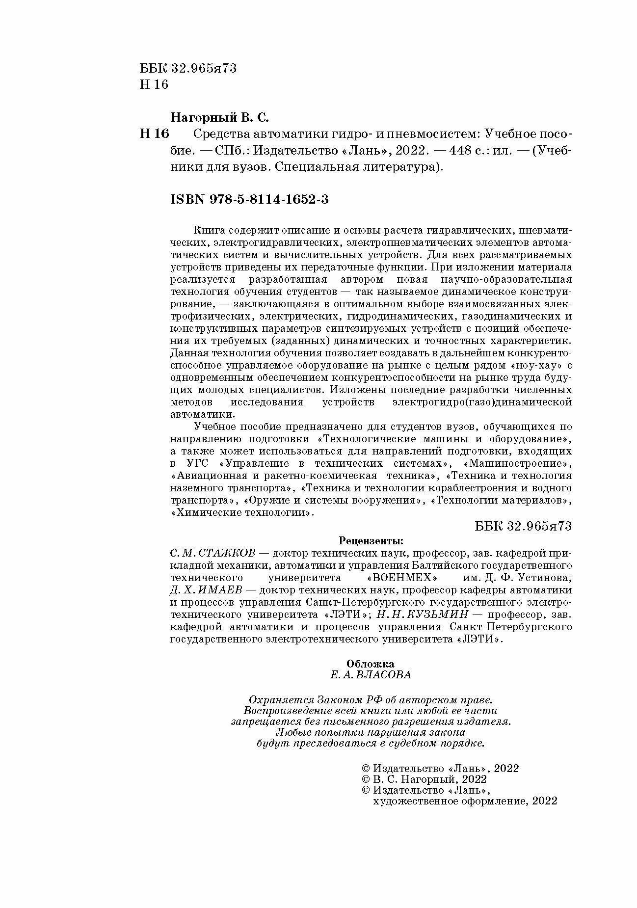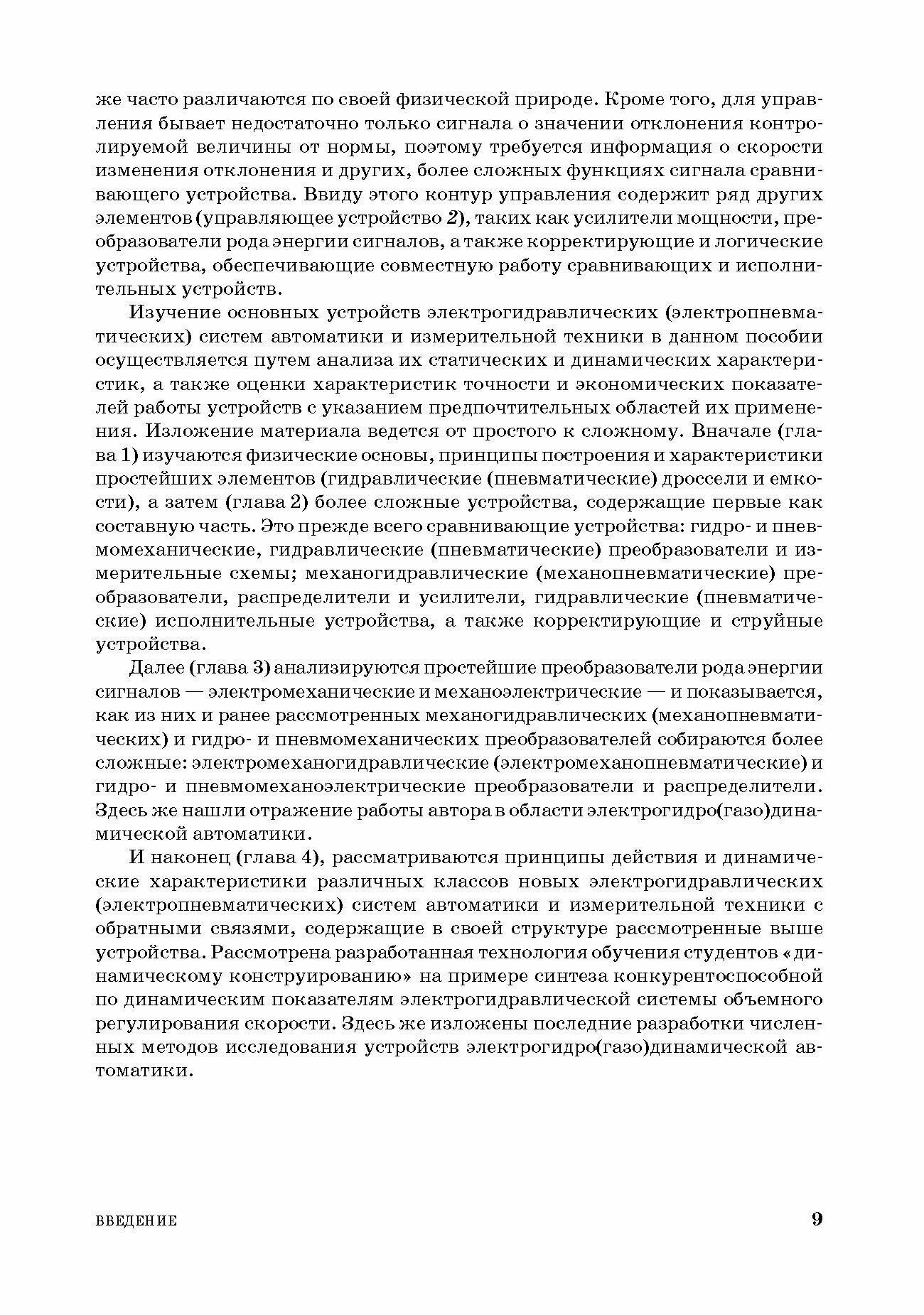 Книга содержит описание и основы расчета гидравлических, пневматических, электрогидравлических, электропневматических элементов автоматических систем и вычислительных устройств. Для всех рассматриваемых устройств приведены их передаточные функции. При изложении материала реализуется разработанная автором новая научно-образовательная технология обучения студентов - так называемое динамическое конструирование, - заключающаяся в оптимальном выборе взаимосвязанных электрофизических, электрических, гидродинамических, газодинамических и конструктивных параметров синтезируемых устройств с позиций обеспечения их требуемых (заданных) динамических и точностных характеристик. Данная технология обучения позволяет создавать в дальнейшем конкурентоспособное управляемое оборудование на рынке с целым рядом "ноу-хау" с одновременным обеспечением конкурентоспособности на рынке труда будущих молодых специалистов. Изложены последние разработки численных методов исследования устройств электрогидро(газо)динамической автоматики.