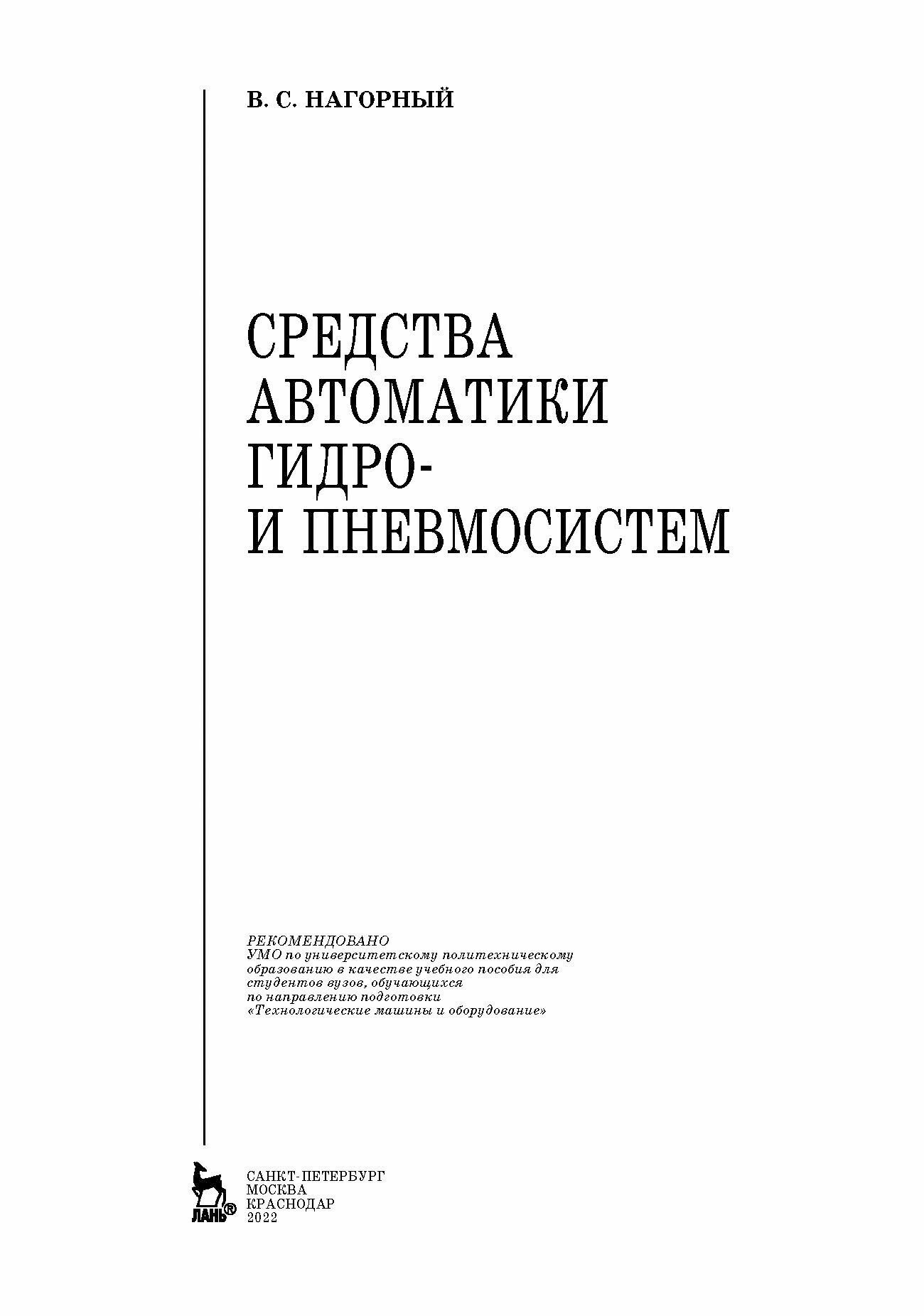 Средства автоматики гидро- и пневмосистем. Учебное пособие (В. С. Нагорный); Издательство ЛАНЬ, 2014
