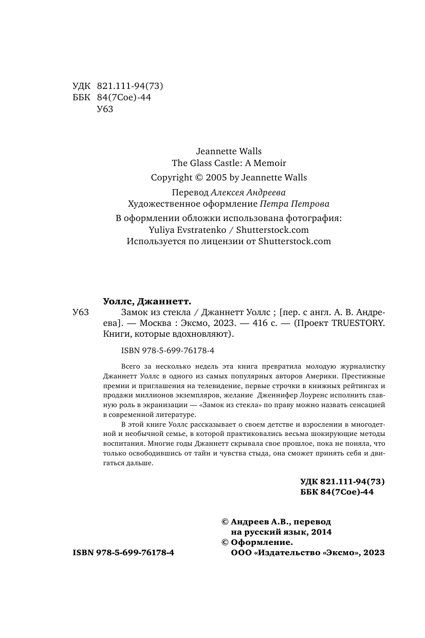 Всего за несколько недель эта книга превратила молодую журналистку Джаннетт Уоллс в одного из самых популярных авторов Америки. Престижные премии и приглашения на телевидение, первые строчки в книжных рейтингах и продажи миллионов экземпляров, экранизация с Бри Ларсон в главной роли - "Замок из стекла" по праву можно назвать сенсацией в современной литературе.