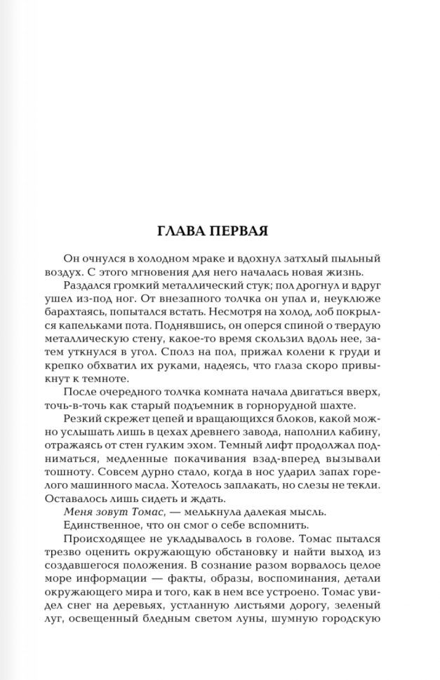 Сегодня они - пешки в чужой игре, похищенные неизвестно кем для участия в чудовищном эксперименте. Их память стерта. Их новый дом - гигантский комплекс, отгороженный от еще более огромного Лабиринта стенами, которые раздвигаются утром и замыкаются вечером. И никто еще из тех, кто остался в Лабиринте после наступления ночи, не вернулся... Они не сомневаются: если сумеют разгадать тайну Лабиринта, то вырвутся из заточения и вернутся домой. Итак, что же будет дальше? Кто рискнет жизнью ради других, и кто выживет в смертоносном испытании?..
