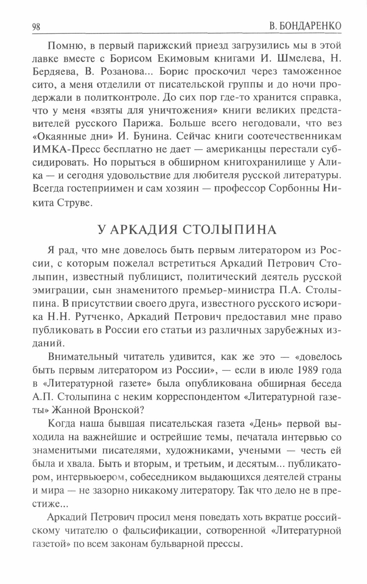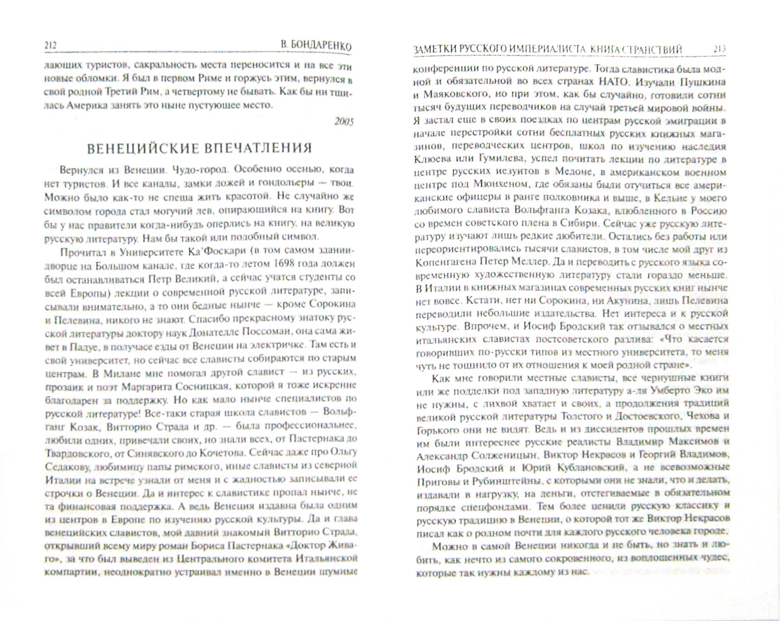 Книгу стоит купить тем читателям, которые интересуются современной публицистикой,русской литературной жизнью, т. к. Бондаренко был дружен со многими русскими литераторами, политиками,его оценки лишены предвзятости и всегда самобытны - за что,как мне кажется, его уважают представители всех течений - от либералов до патриотов.