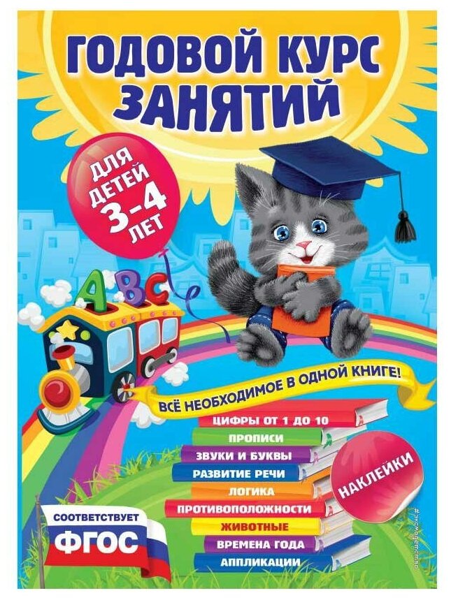 Годовой курс занятий. Для детей 3-4 лет (с наклейками). (Лазарь Елена, Далидович Анастасия Иосифовна, Гурская Ольга Станиславовна); ООО "Издательство "Эксмо", 2014