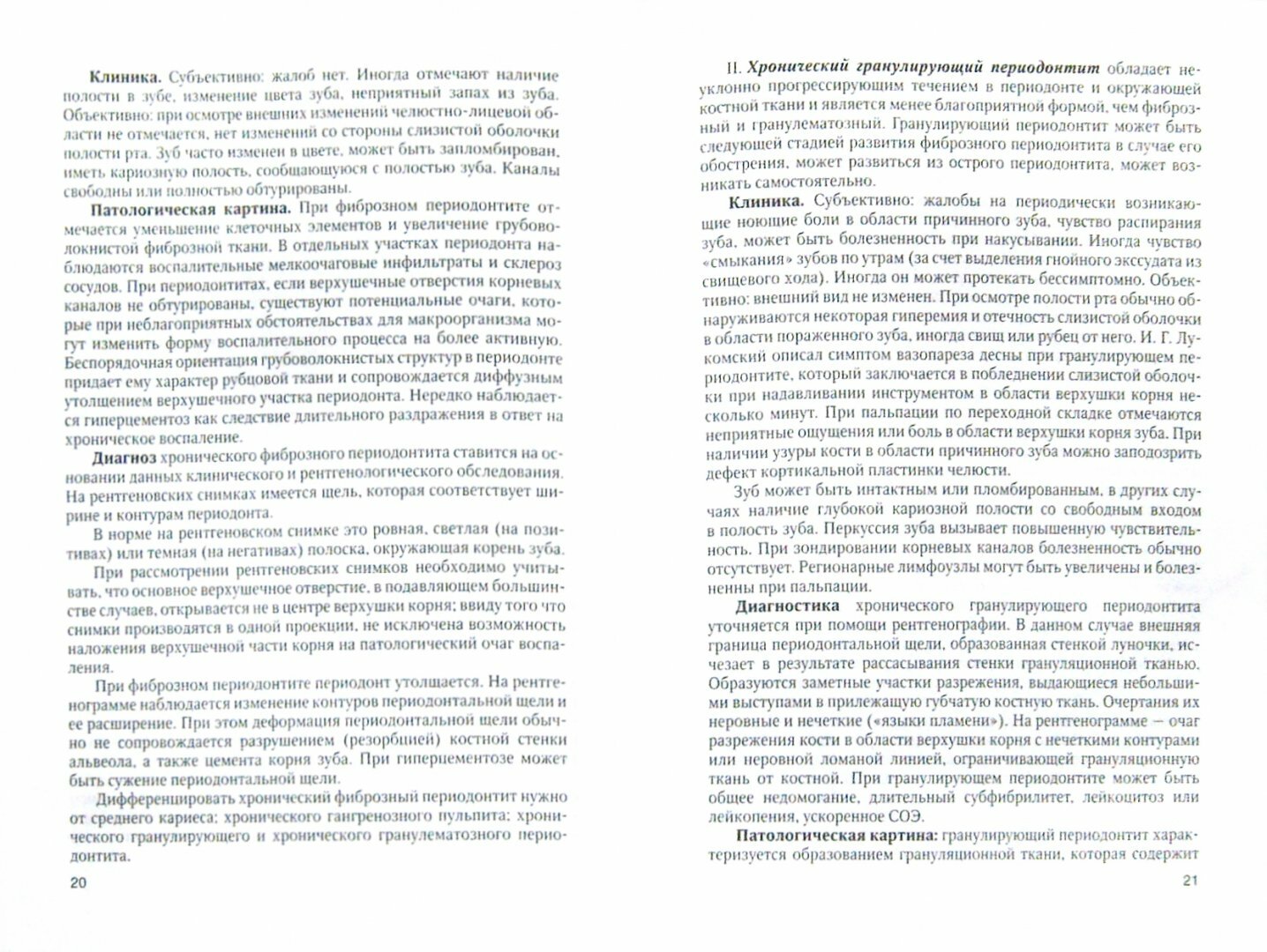В этом издании отражены: анатомия, гистология периодонта, функции периодонта - строение периодонта, этиология и патогенез верхушечных периодонтитов, классификация периодонтитов, лечение периодонтитов, основные принципы лечения различных форм периодонтитов, ошибки и осложнения при лечении верхушечных периодонтитов.
