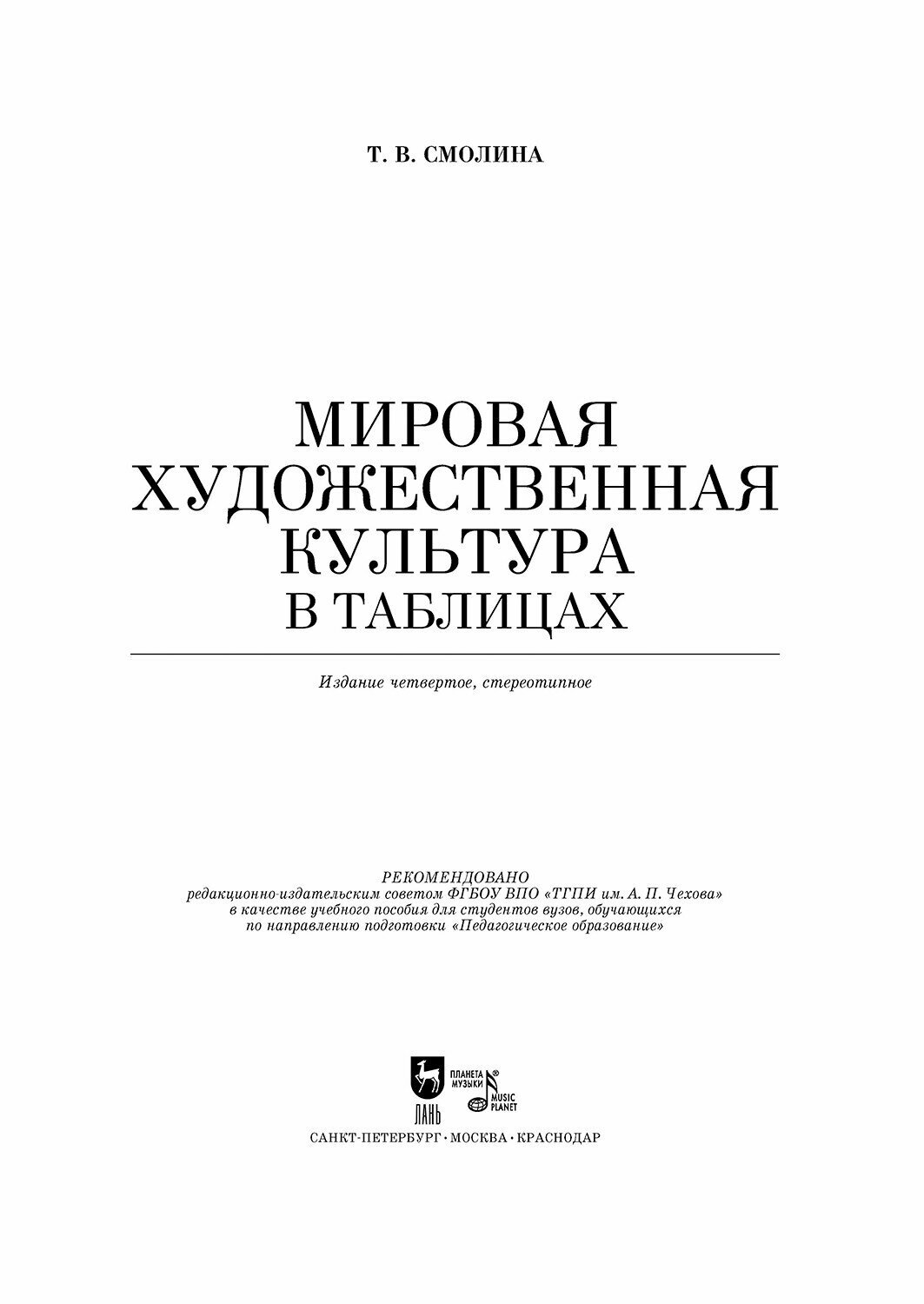 Мировая художественная культура в таблицах. Учебное пособие (Смолина Татьяна Владимировна); Планета музыки, 2014