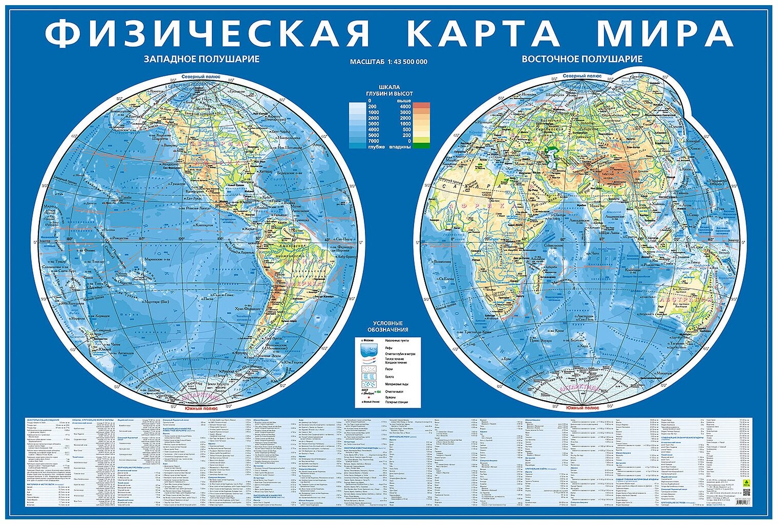 Физическая карта мира. Карта полушарий. На картоне; РУЗ Ко, 2018