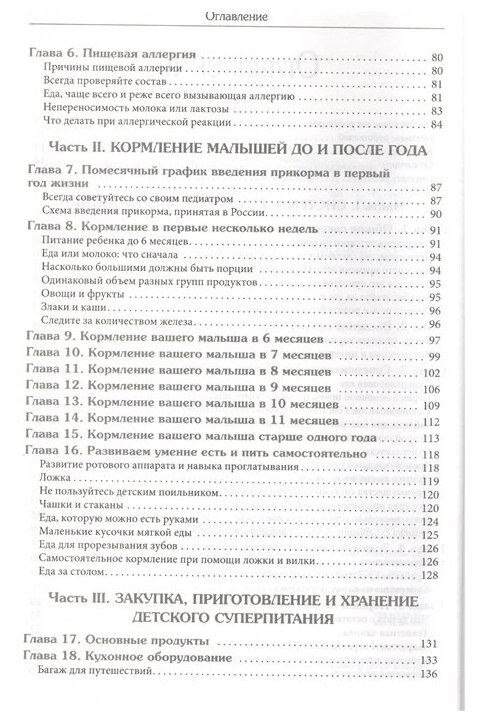 Рекомендации по структуре меню для малышей, а так же по срокам введения в рацион продуктов сильно противоречат рекомендациям российских педиатров. Таким образом, практическая ценность книги сводится к нулю. Однако надо отдать должное издателю- все основные расхождения снабжены комментариями . Единственная ценность книги- даны неплохие таблицы для ведения учёта потребляемой ребёнком еды и небольшие советы по оптимизации процесса приготовления еды. Но покупать ради этого книгу совершенно не стоит.