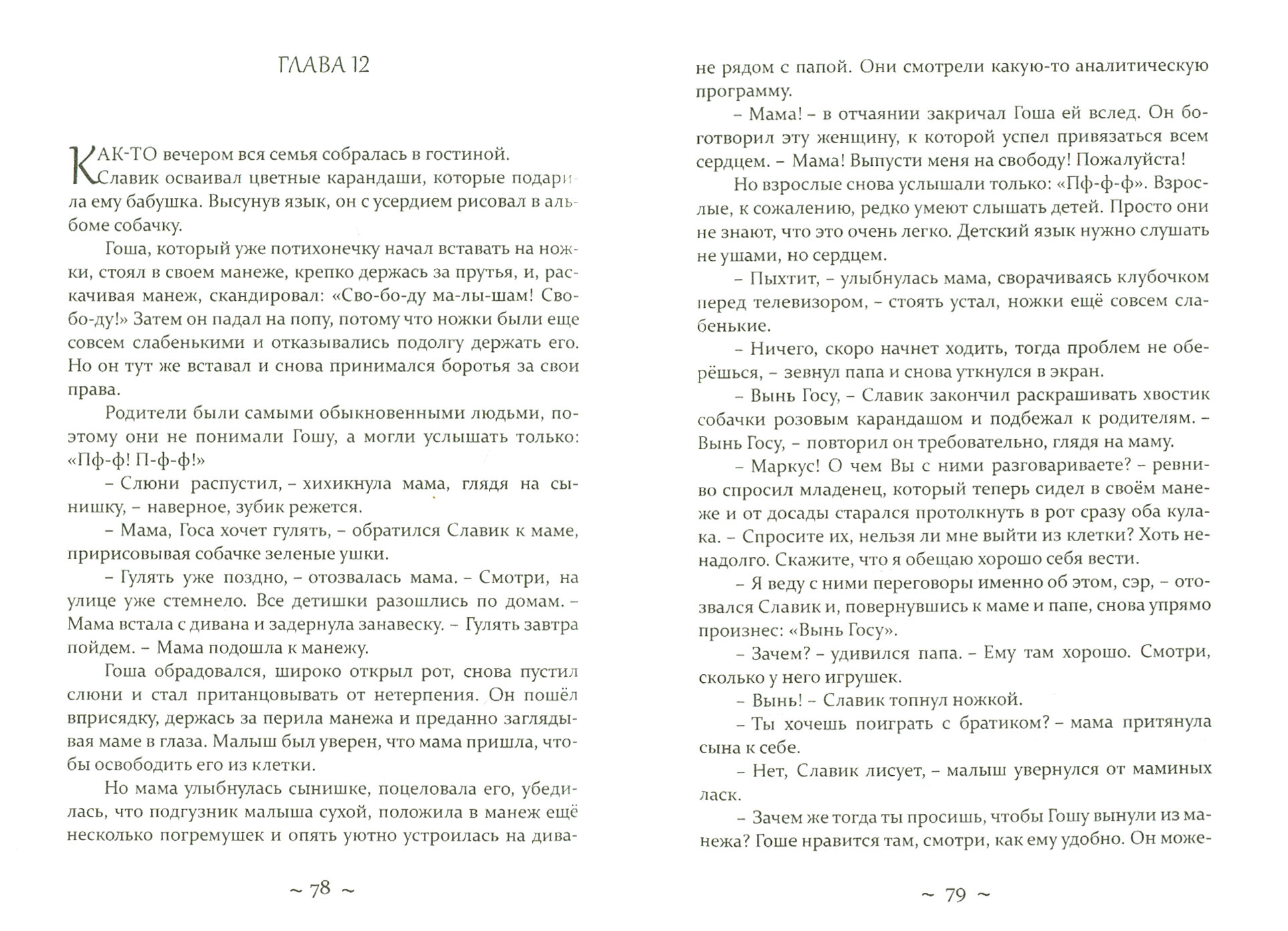 Герои повести - новорожденный Гоша и его полуторагодовалый брат Славик - уже встречались прежде, в прошлой жизни. Только тогда они жили в Англии и один был аристократом, а другой - его преданным слугой. У каждого из них за плечами богатый жизненный опыт; эти мудрецы в детских телах знают, для чего каждый из нас приходит на Землю, но им никак не удается передать свои знания окружающим их взрослым, ведь малыши - заложники своего возраста.