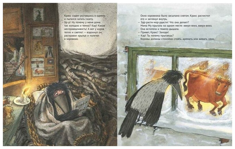 Мы начали собирать книги про корову по имени Маму Му и ворона Кракса лет 8 назад. Тогда взяли на пробу парочку: остальные уже были раскуплены. Долго ждали переиздания. И вот свершилось!