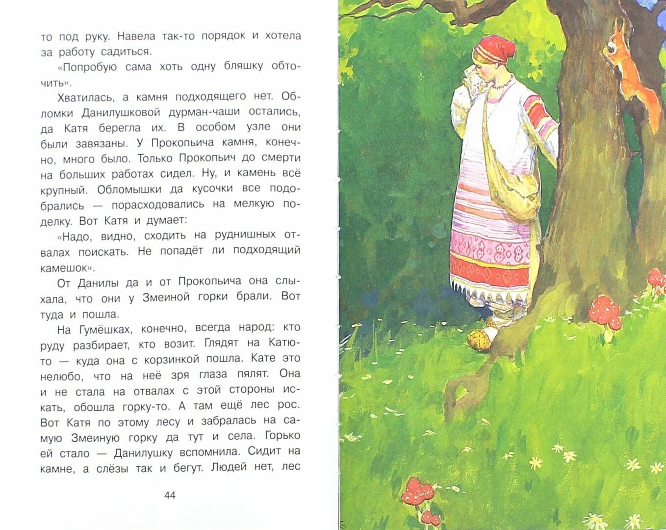 Книги этой серии мне очень понравились,собираю сказы Бажова, рисунки яркие,печать контрастная,,шрифт средний легко читать и детям и взрослым,я довольна этим изданием.В этой книге еще 2 сказа: Хрупкая веточка и Горный мастер.Рекомендую и цена не большая.Спасибо Лабиринт!