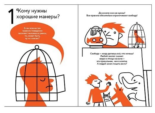 Замечательно изданная книжка с тонким ненавязчивым юмором рассказывает о вроде бы простейших вещах - стоит ли ковыряться в носу, как правильно чихать и зачем чистить зубы. Ваше дитя не в курсе, как эстетично почесать в затылке или горит желанием узнать, зачем человеку носовой платок? Эта книжка для него! Всё в этой книге рассказано без излишнего морализирования, коротко, весело и по делу. Отдельное внимание можно обратить на иллюстрации. Оформление стильное, ироничное и понравится и взрослым.