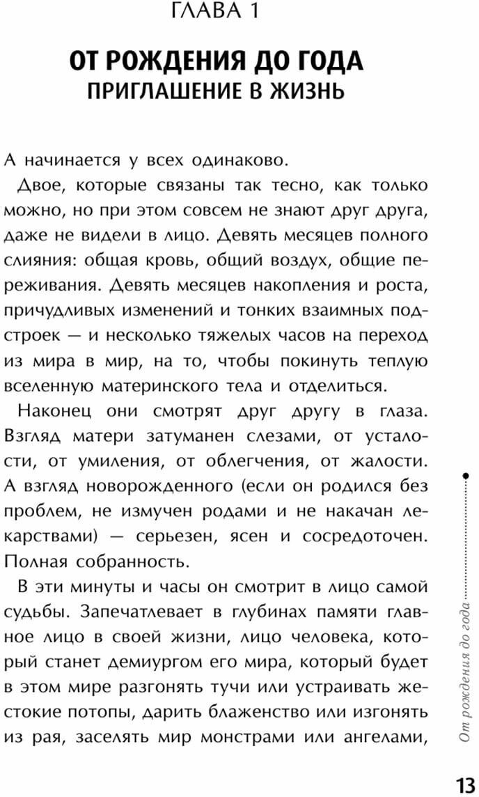 Вроде автор ничего нового и не пишет – ребенка нужно любить, окружить заботой с первых минут, не рваться на работу (всех денег не заработаешь, а младенчество так скоротечно), но сколько бы ошибок (поведенческих, бытовых, финансовых) я бы не сделала, прочитав эту книгу прямо перед родами. Пыталась работать (правда, пристроить грудного ребенка никуда не удалось, поэтому работала с ним на руках, здесь инстинкты сработали), ездить с мужем на отдых, кормить по часам, выстраивать режим ребенка под свои потребности, а не по его желанию, воспитывала его, оставляя плачущего в кроватке.