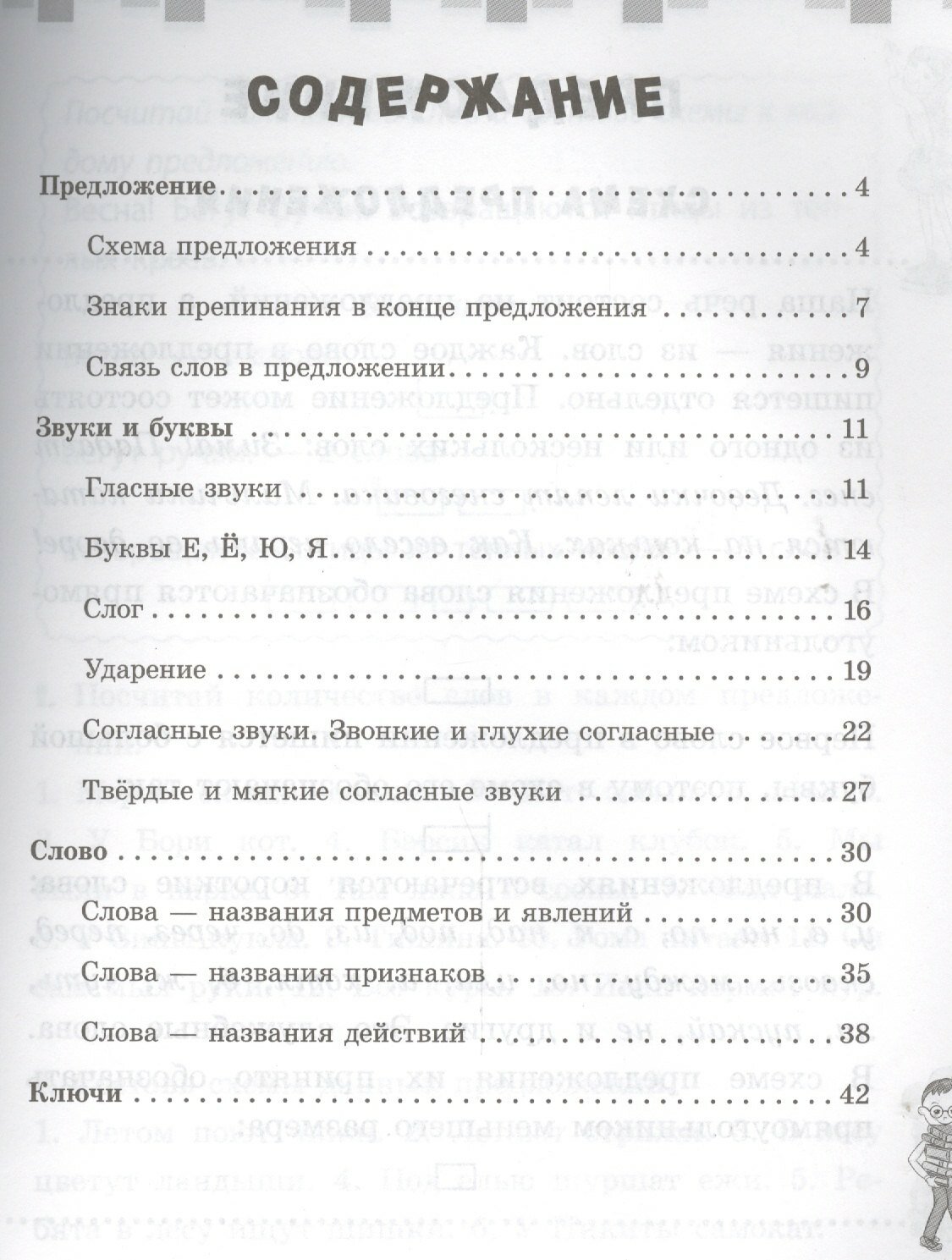 Благодаря данному пособию ребенок научится делать звуко-буквенный анализ слов, правильно определить вид предложения или текста, узнает множество пословиц, потренирует смекалку, разгадывая ребусы.