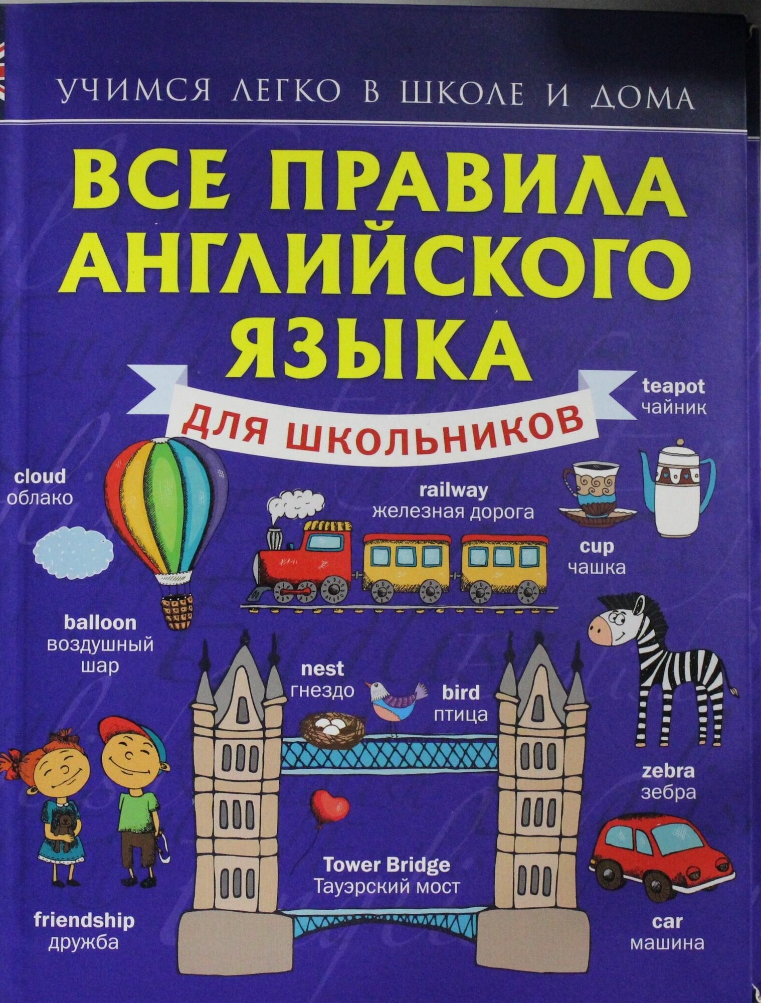 Книга очень порадовала, и уже в первый день помогла справится с домашним заданием. Обложка из серии твердо- мыгкой. Много картикок. Пол книги это правила, существительные, глаголы, прилагательные, построение предложений И так далее, а вторая половина это иллюстрированный словарь с базовыми словами: профессии, фрукты, звери итд. Из минусов: отсутствие транскрипций( все таки книга явно расчитана на младших школьников) и нет правил буквосочитания.