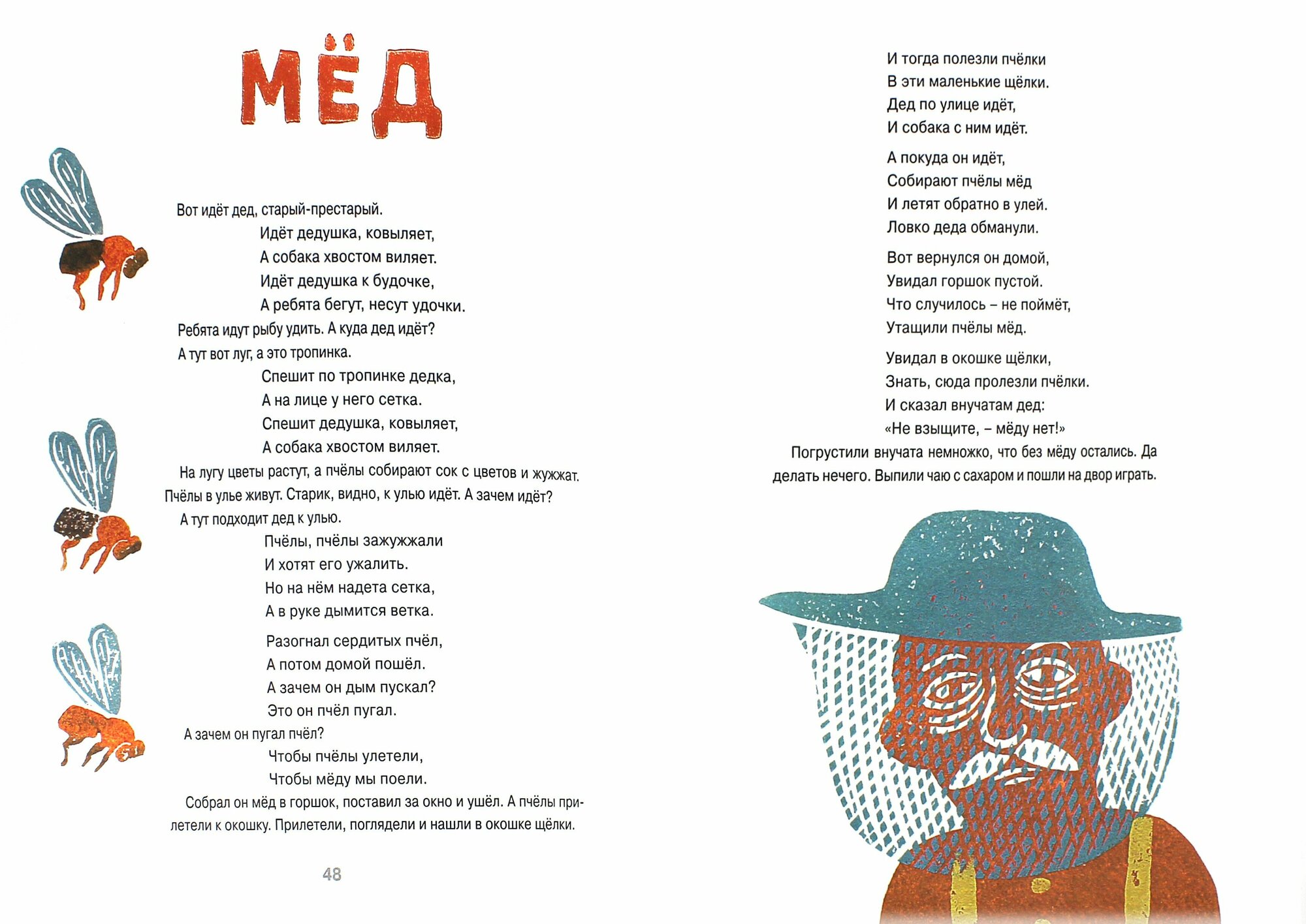 Единственный вопрос у меня - к иллюстрациям. Они скорее для взрослых, чем для детей. В ряде случаев - "обедняют" красочный мир поэзии Введенского (это относится к иллюстративному ряду всех трёх книг). Достаточно сравнить современные иллюстрации с картинками к первым изданиям Введенского 20-30-х годов. Становится понятно, что на первый план выходит восприятие иллюстраторами творчества Введенского тогда - и сейчас. Если тогда картинки были максимально подробными, доступными и понятными для малышей и отражали содержание и колорит непосредственно самих стихов, то сейчас в иллюстрациях ощутимо современное знание о Введенском не только как о детском писателе, но и как о поэте авангарда, обэриуте, творившем в 20-30-е годы. Соответственно, иллюстрации ориентируются уже не столько на текст, сколько на эпоху и место поэта в истории литературы. Поэтому иллюстрации в духе наивного реализма или в стиле 30-х годов интересны в первую очередь взрослым или подросшим детям. Но это не умаляет достоинства изданий, поскольку текст - бесподобный, он "вытягивает" всю книгу и прекрасно воспринимается на слух. Ребёнок и я - в восторге! Поэтому однозначно рекомендую иметь книгу в домашней библиотеке))