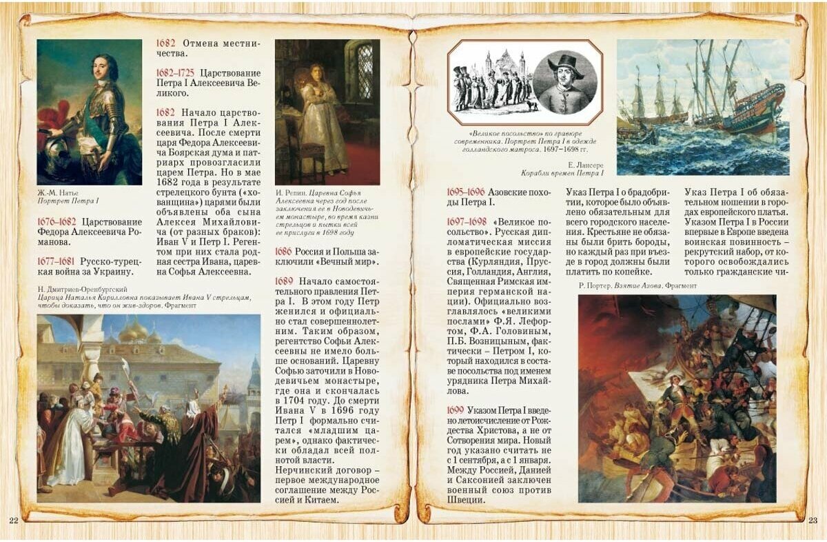 из-за небольшого объёма книга содержит только самый необходимый минимум дат по истории России, однако, если сопровождать чтение пояснением непонятного и подробными пояснениями каждой даты, книга будет отличным подарком вашему ребёнку и поможет заложить в нём любовь к истории родной земли!