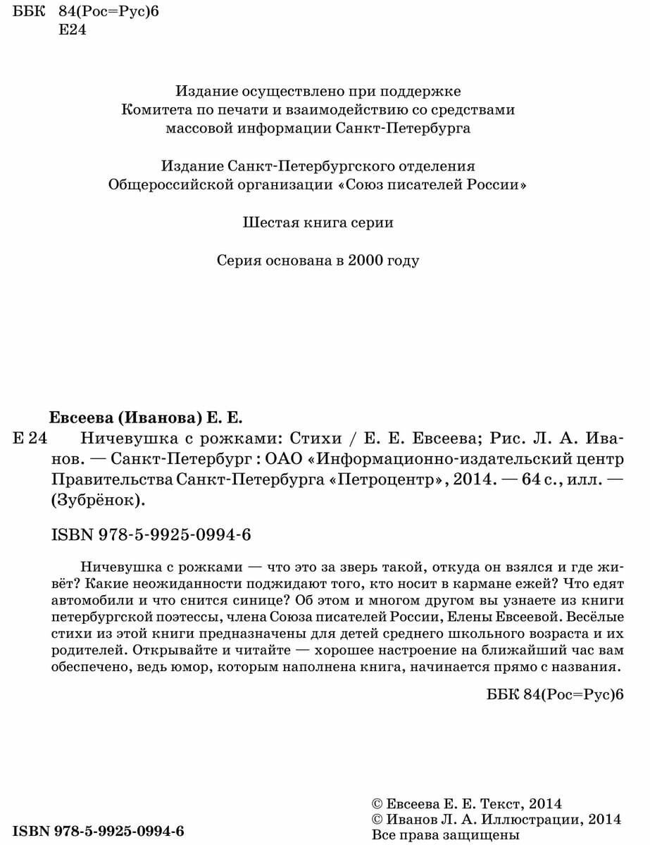 Книга: Ничевушка с рожками (Евсеева Е.); Петроцентр, 2014