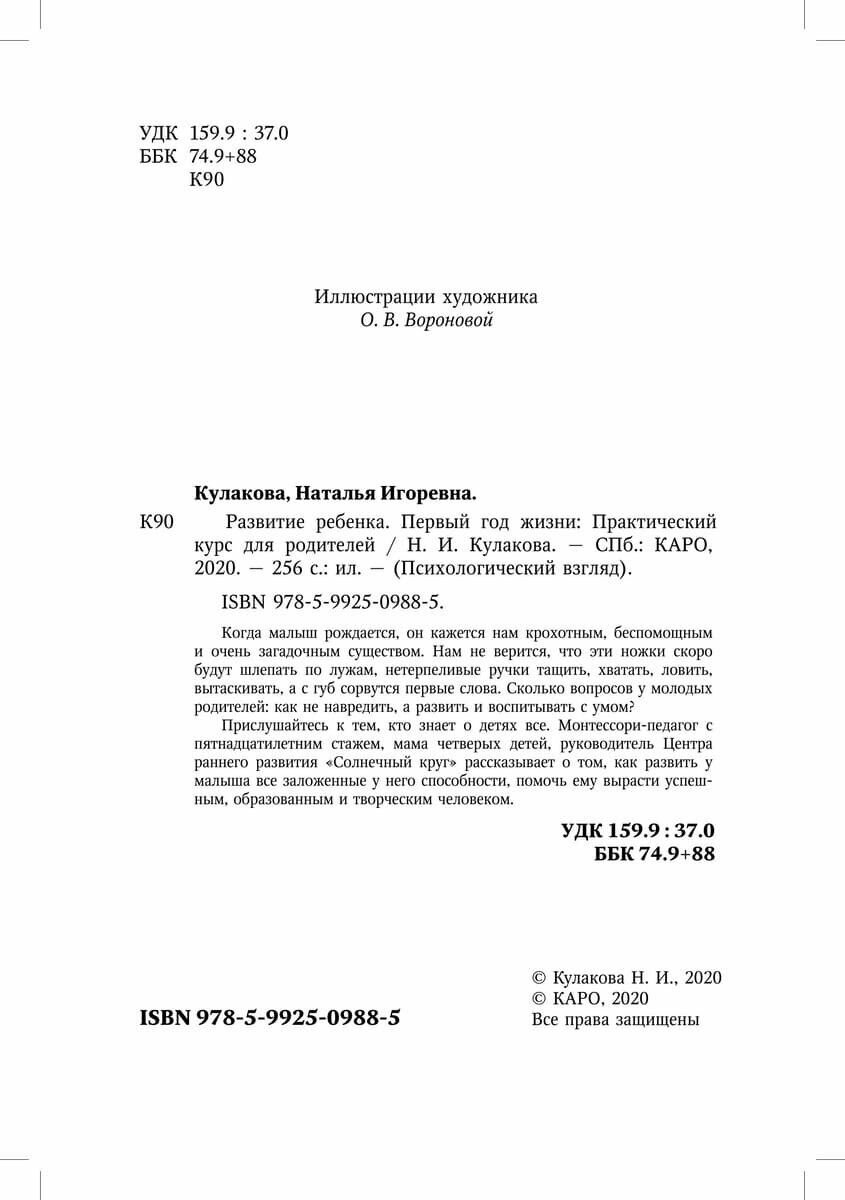 С тех пор, как приобрела и прочла книгу Кулаковой, у меня родилось еще двое детей, и я неизменно возвращаюсь к ней, многое запомнила уже наизусть. Это мое сокровище,палочка-выручалочка, без преувеличения:-) -