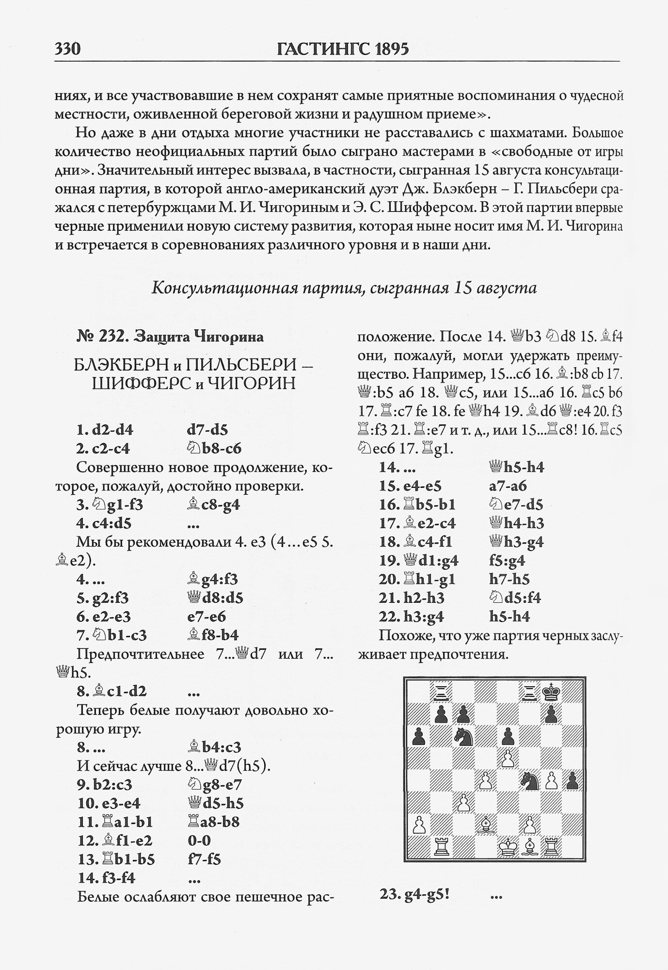 Вашему вниманию предлагается сборник партий самого известного и легендарного турнира в истории шахмат. Все сильнейшие шахматисты того времени — чемпион мира Эм. Ласкер, экс-чемпион В. Стейниц, а также М. Чигорин, 3. Тарраш, К. Шлехтер, Д. Яновский и многие другие приняли в нем участие. А победа досталась малоизвестному тогда шахматисту Гарри Нельсону Пильсбери...