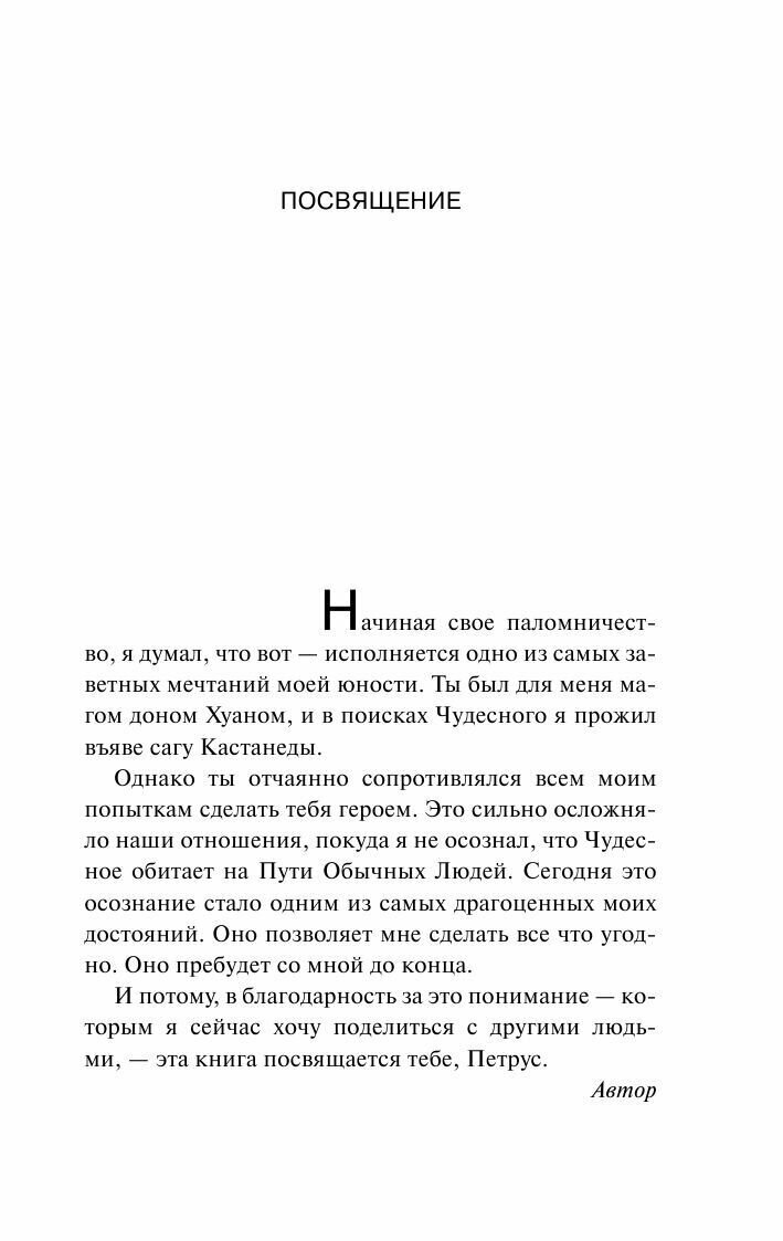 В книге описывается паломничество автора,начинающееся в испанском городе Сантьяго-де -Компостела,что в Испании. В ней много эзотерических упражнений,которые я вряд ли когда-нибудь смогу выполнить. Я не могу сосредотачиваться настолько,чтобы становиться подобно зернышку или представлять во всех подробностях свои похороны...